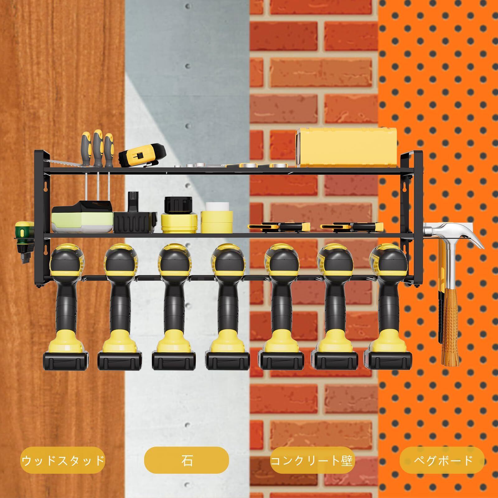 awliye ツールキャビネット 壁掛け 7掛け 電動ドリル収納ラック 60x24x20cm 多機能 電動工具 収納 高い耐荷重性 ドリル ツールシェルフ 壁マウント ツールストレージ 工具キャビネット パワーツールドリル用 自宅 作業場 小屋用(ブラック)
