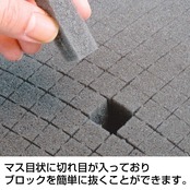マス目状に切れ目が入っておりブロックを簡単に抜くことができます。