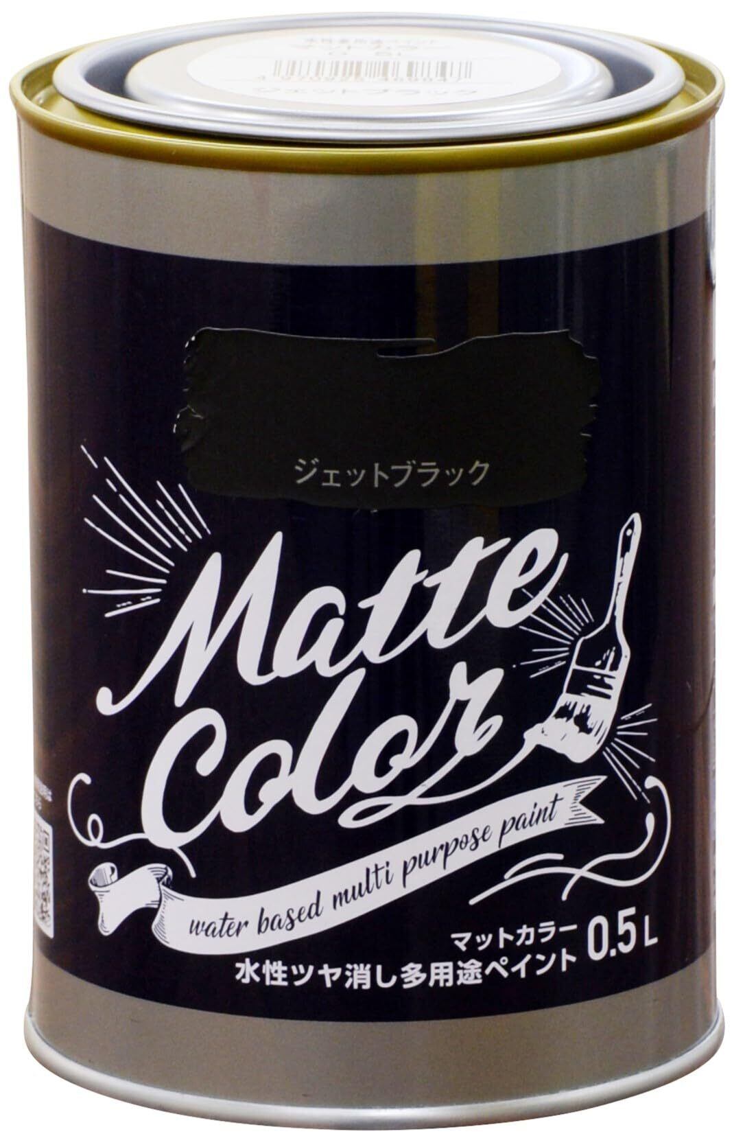 アサヒペン 塗料 ペンキ 水性多用途ペイント マットカラー 0.5L ジェットブラック 水性 多用途 艶消し マット調に仕上がる 1回塗り 低臭 抗菌 防カビ 防藻 壁紙 シックハウス対策品 日本製