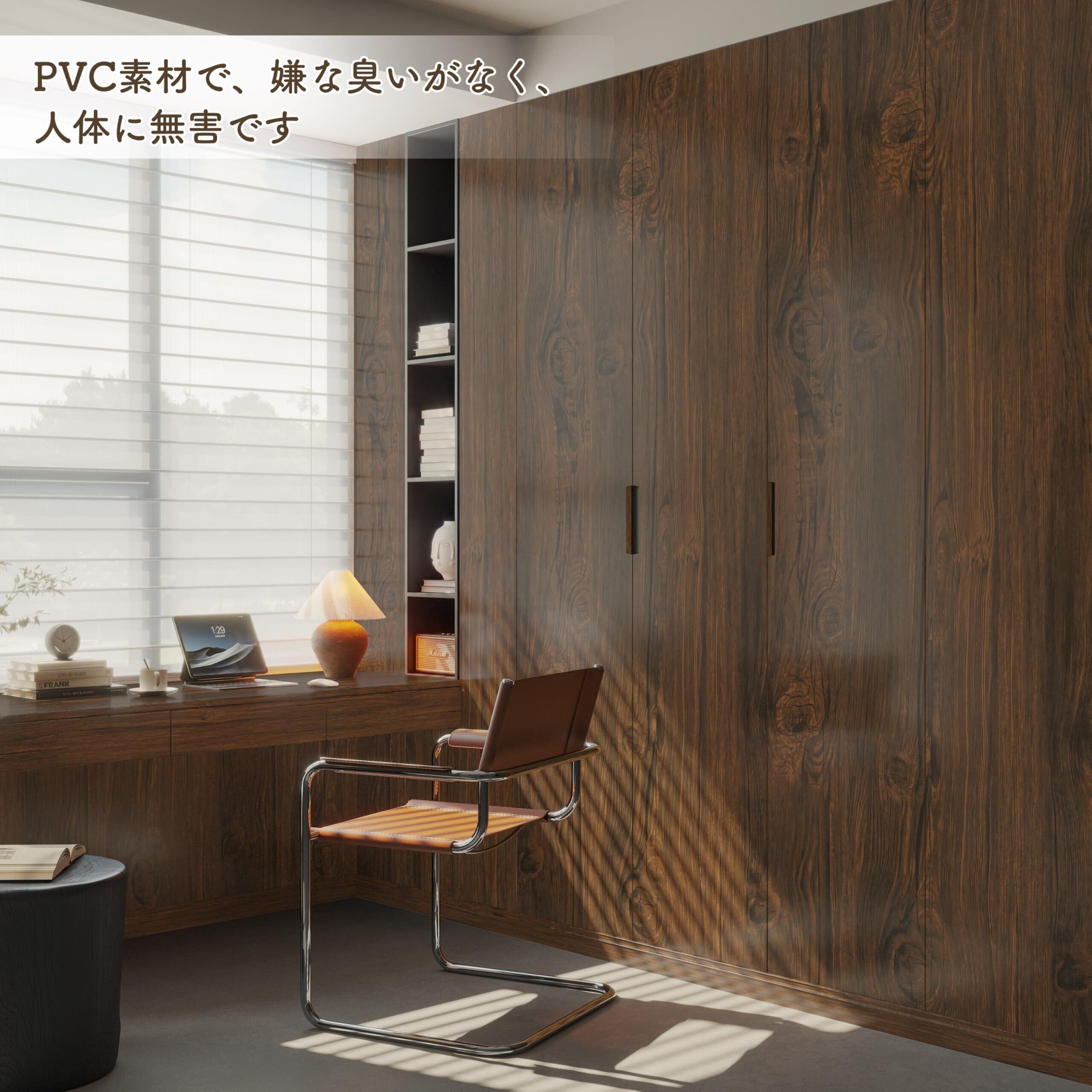 practicalWs 木目シート リメイクシート 木目調シート 褐色耐熱壁紙シール 壁紙の上から直接貼れる 用キャビネット・ドア・壁・テーブル天板のリメイクに 40cmX3m