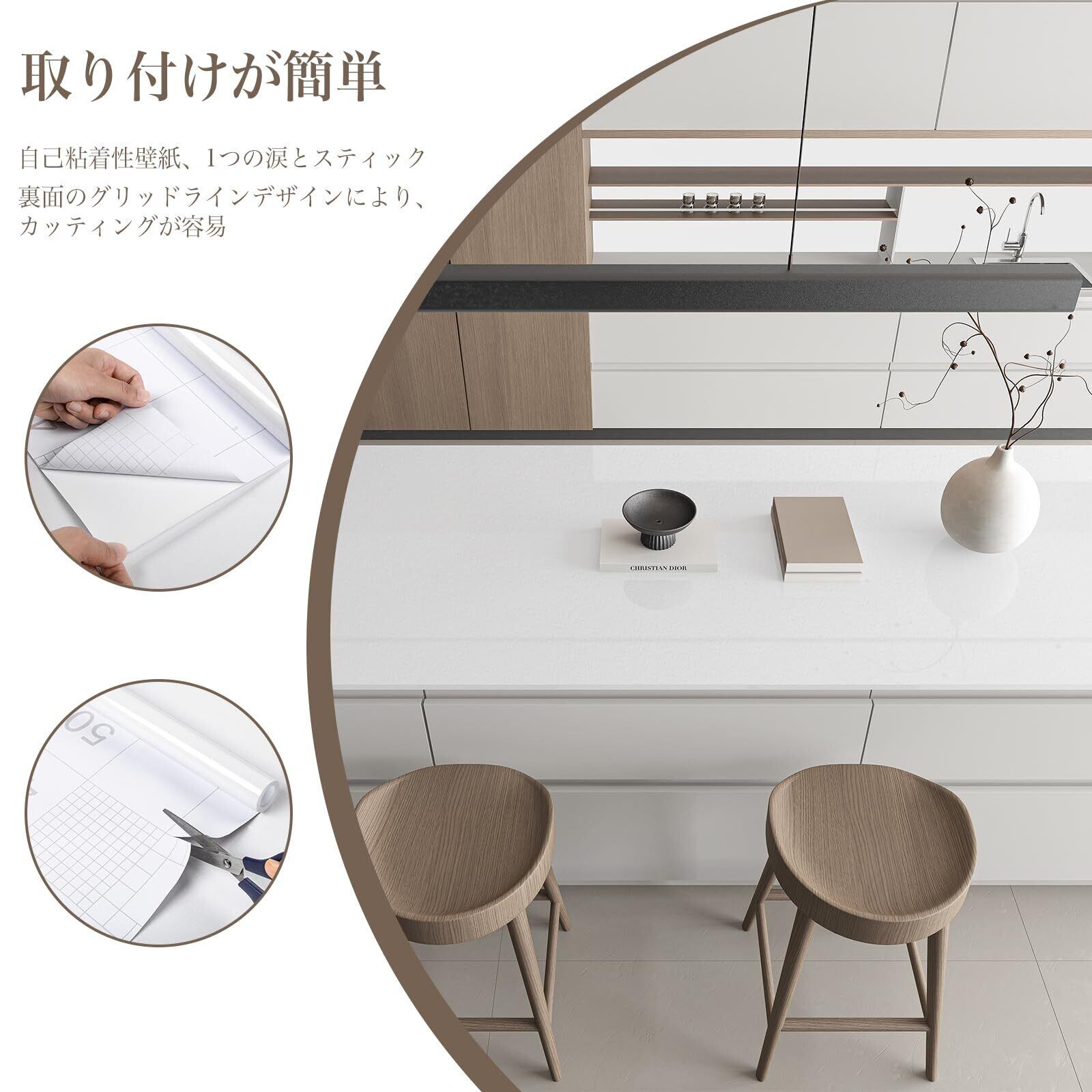 practicalWsリメイクシート 白 壁紙シール 防水 ホワイト 貼って 剥がせる壁紙 耐熱 壁紙の上から張る壁紙 キッチン、キャビネット、ドア、壁、テーブルトップを改装するための壁紙 40X300cm