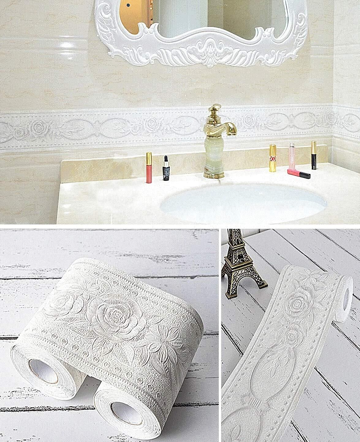 【特価セール】【SRrabbit】手軽にDIY! おしゃれな 薔薇柄 トリムボーダー はがせる 壁紙シール リメイクシート マスキングテープ 防水 補修 ウォールステッカー 10.5㎝ × 5m 10.5㎝ × 5m( 薔薇・ホワイト) (ホワイト1) | bobo