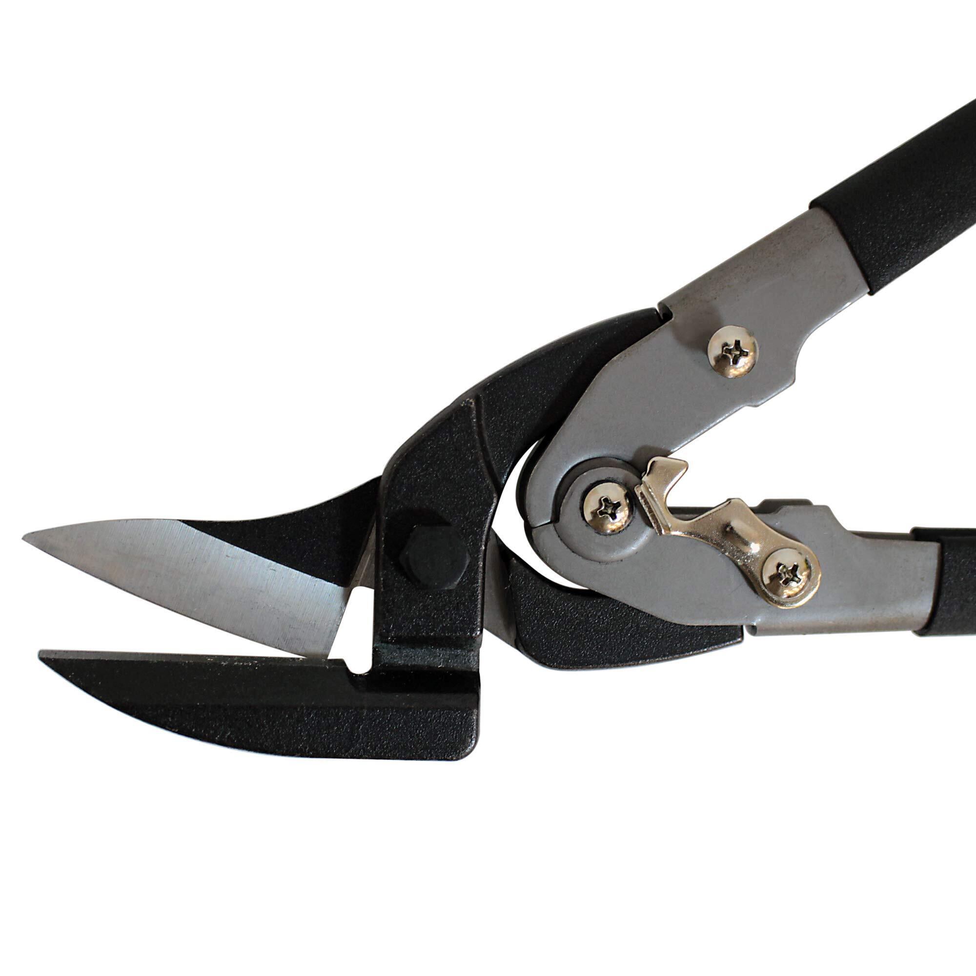 特徴 ●倍力機構搭載、バネ付ハンドルで少ない力で楽に切れます。 ●ステンレス0.7mm厚対応。しっかり切れます。 ●オフセットした刃により、切った材料が手に当たらず安全に切断作業を行えます。下刃の根元側のくぼみが切断した材料を下方向に逃がし、手と材料が干渉しません。 ●直線切りも曲線切り(反時計回り専用)も可能です。 用途 ●ブリキ、トタン、ガルバリウム鋼板、ステンレス、アルミ板など金属板の切断に。 切断能力 ●ステンレス0.7mm、鉄板1.2mm、銅板1.5mm 材質 ●刃部:クロムモリブデン鋼(SCM440)、ハンドル部:スチール・ゴム 仕様 ●全長:270mm ●刃部(有効長):43mm ●刃部硬度:HRC60~62 ●重さ:約500g