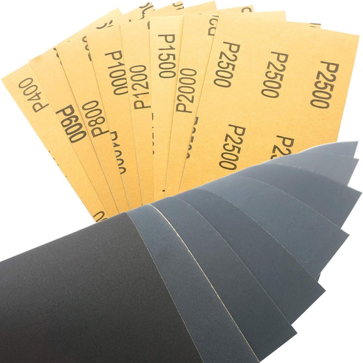 耐水紙やすり 精密仕上げ磨き7000 5000 3000 2500 2000 1500 1200 1000 800 600 400番 耐水性ペーパー紙ヤスリ サンドペーパー各3枚、合計33枚
