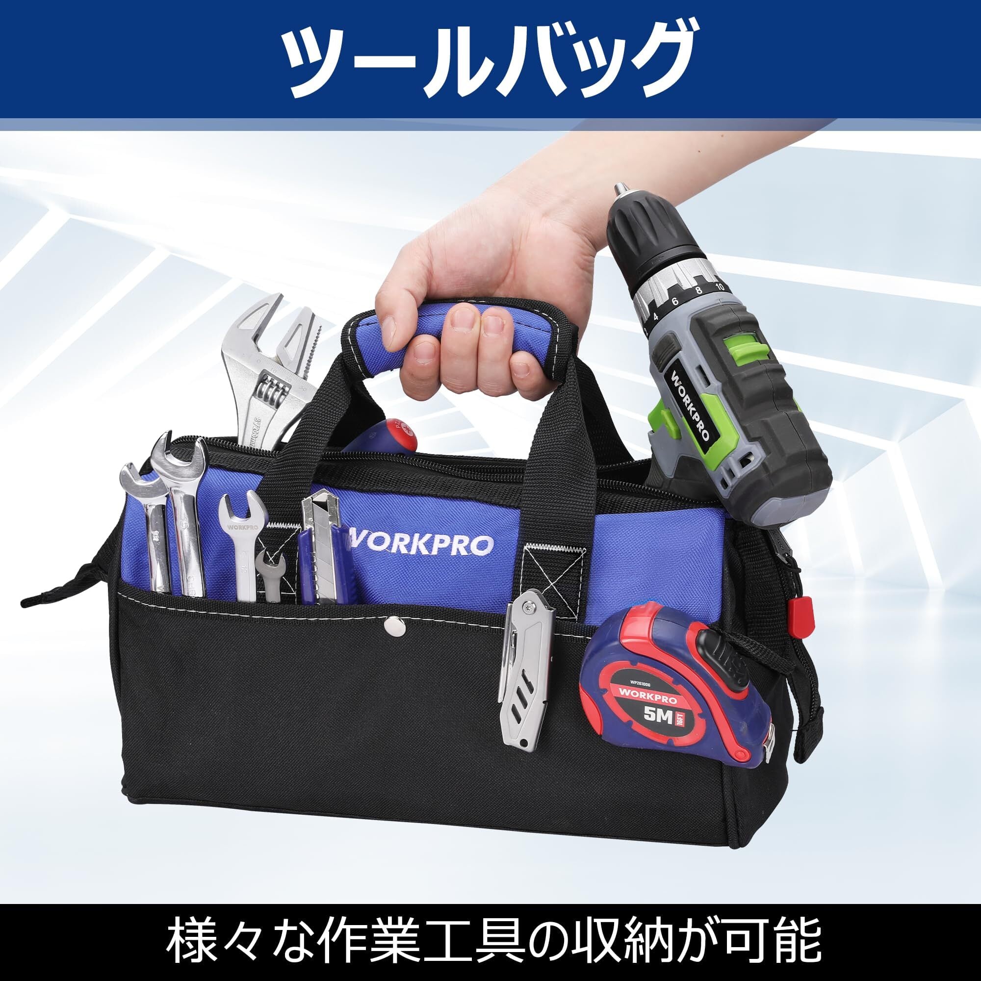 WORKPRO ツールバッグ 工具差し入れ 道具袋 工具バッグ 大口収納 600Dオックスフォード ワイドオープン 幅33cm