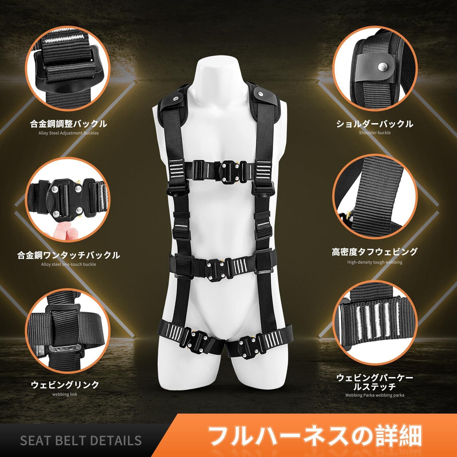 【ご注意】フルハーネス安全帯 新規格 セット、高所作業やクライミングなどは非常に危険ですので、自己の行動と判断に責任を持ち、適切なトレーニング(技術および安全対策知識)を事前に習得してからご使用ください。使用方法が誤っていたり、メンテナンスが不適切な場合、重大な事故につながる可能性があることにご注意ください。私たちの店では、常に高品質の製品とサービスを提供することに注力しています。商品について何かアドバイスがございましたら、ぜひメールにてお知らせください。