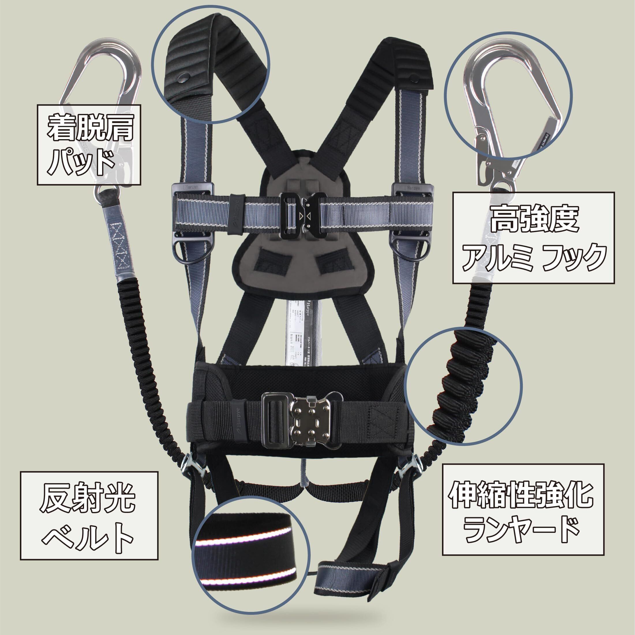 ハーピー 【新規格適合完了】 アルミ合金 軽量 フルハーネス ダブルランヤード 2丁掛け 胴ベルト/胴当てベルト フルセット ワンタッチバックル 安全帯 墜落制止用器具 反射ベルト 選定に迷わないフリーサイズ