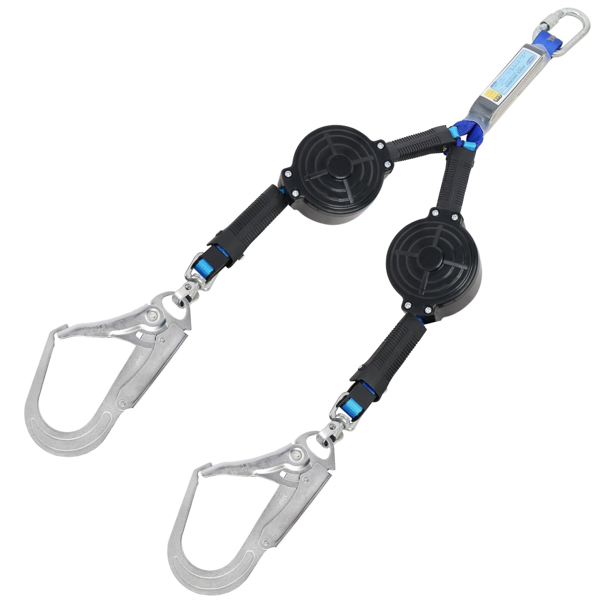 UIANSP 新規格安全帯 フルハーネス用ダブルランヤード 2本 兼用ランヤード 巻取り式 フルハーネス型 ランヤード 墜落制止用器具 安全帯
