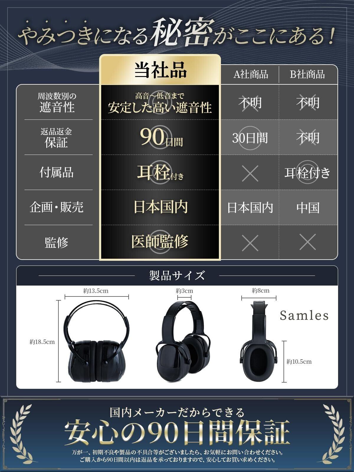 Samles 【現役医師監修】 イヤーマフ 防音 耳栓付き 大人 男女兼用 『最大40dB 』 騒音対策 睡眠 勉強 集中 聴覚過敏 聴覚保護ヘッドホン