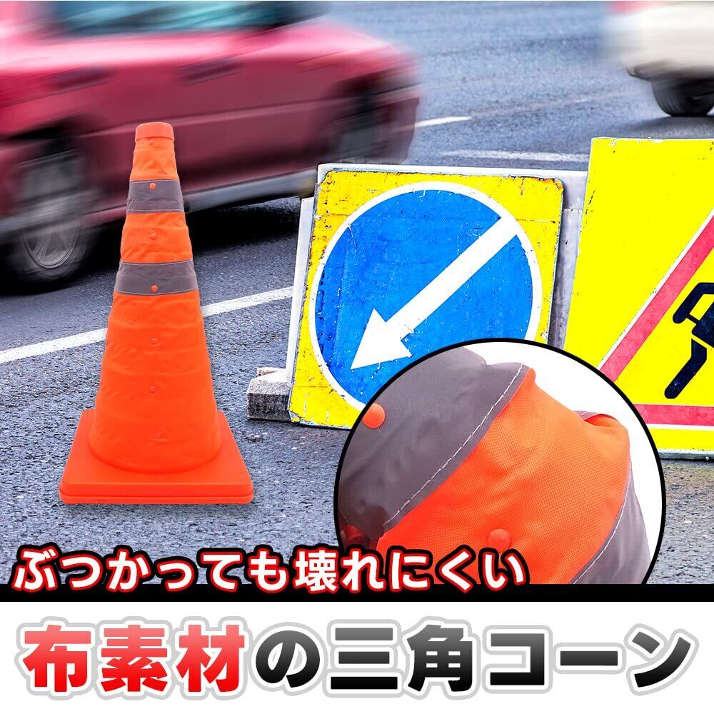 【工事現場スタッフ監修】折り畳み 三角コーン 防水 反射布付き 目印 警告 注意喚起 視認性 持ち運び 車内常備 (2個セット)