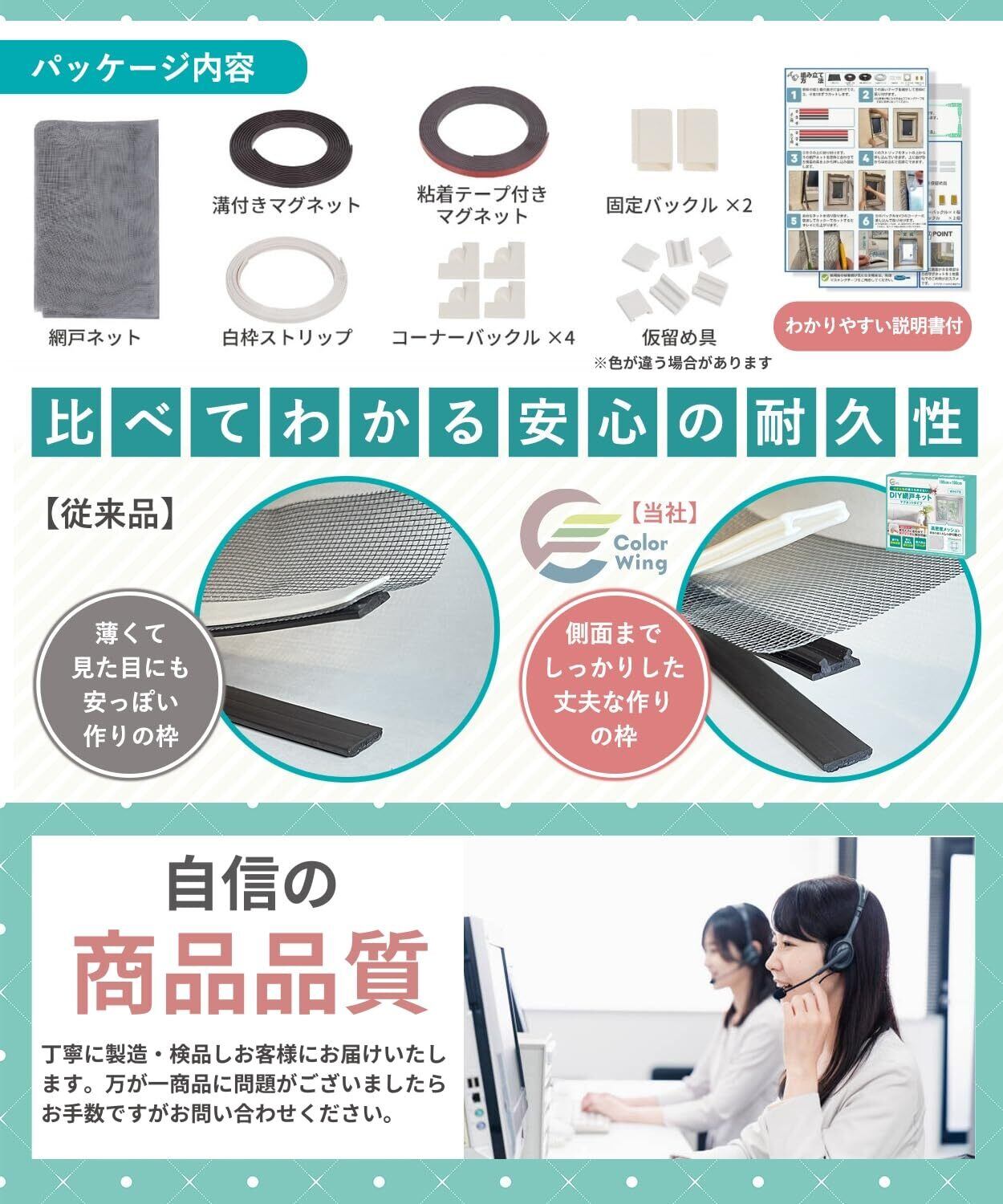 ColorWing マグネット式 DIY 網戸キット 【網目の細かさUP!】 小窓用 簡易網戸 虫除け ネット (枠:ホワイト 100cm×100cm)