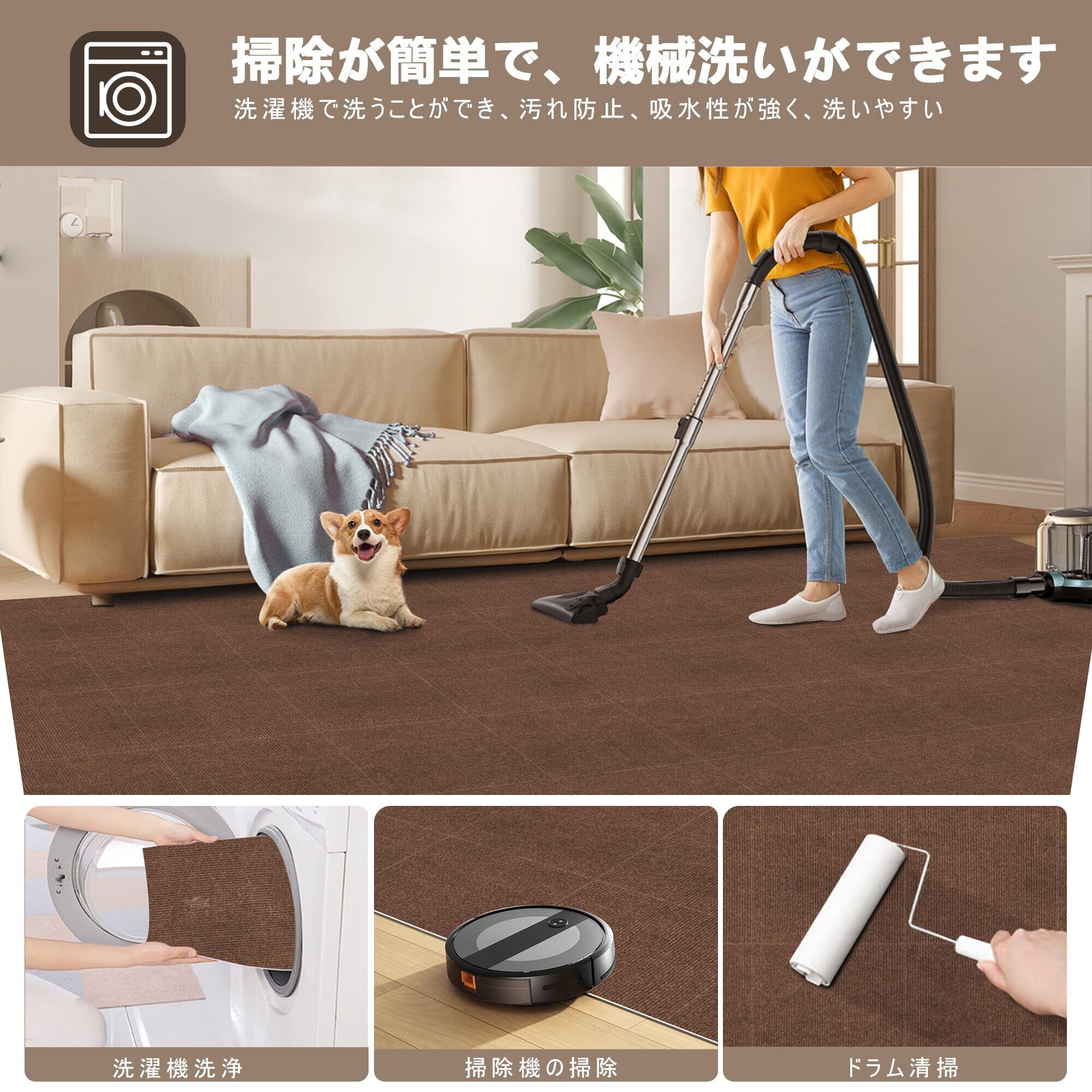【洗える・お手入れ簡単】フーバーやロボット掃除機にも対応しているので、お手入れも簡単。 汚れたり傷んだりした場合は、汚れた部分だけ取り外して手洗いやスポンジで洗うと効果的です。 (洗濯機の使用はお勧めしません)。 お手入れが簡単で、軽くすすいで再利用できます。 床の傷や汚れ防止に最適で、簡単にお部屋の印象を変えることができます。