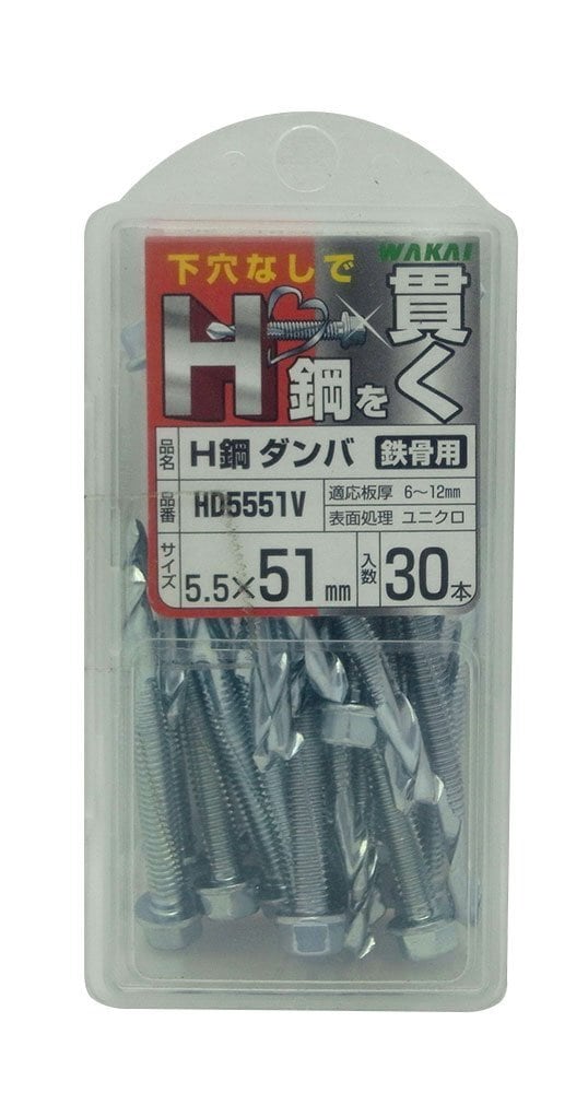 WAKAI ユニクロ H鋼 ダンバ 鉄骨用 5.5X51mm 30本入