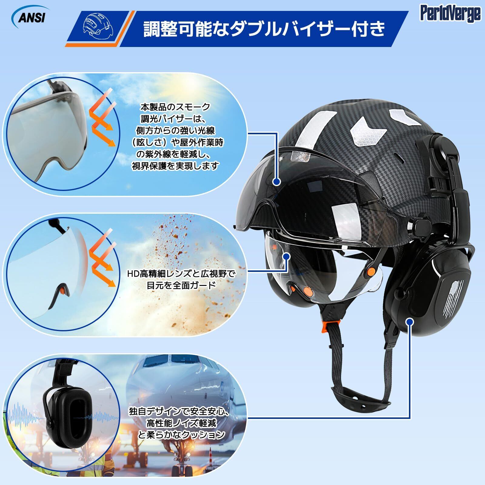 【特価商品】PerldVerge 職業用ヘルメット 建設用ヘルメット 耳カバー 建設用防護帽 炭素繊維パターン 調節可能なヘッドバンド付き 工事用 林業 ヘルメット 安全騒音低減 軽量 通気性 耐衝撃 夜光反射 調整可能 | bobo