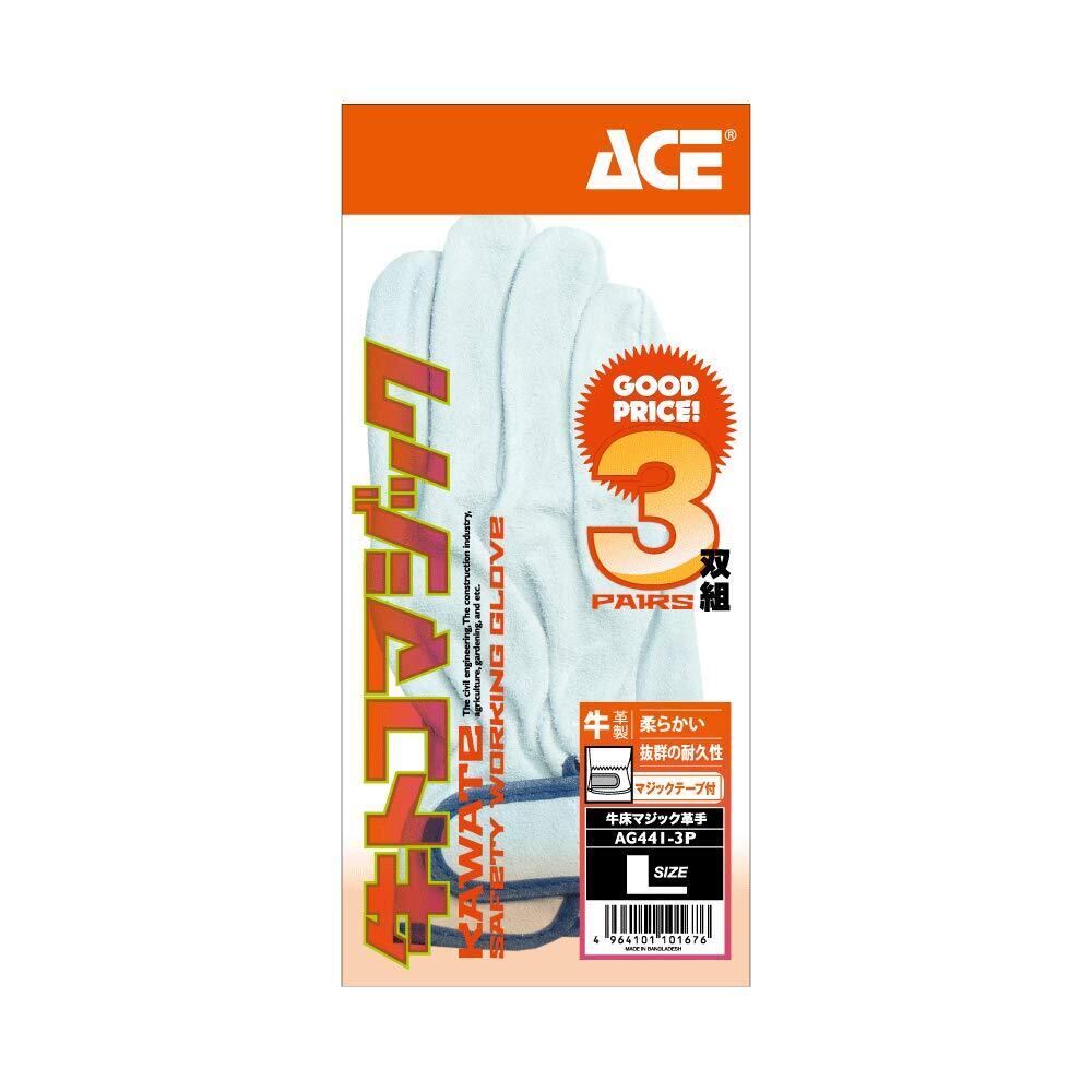 ACE 【まとめ買い】3双パック 作業手袋 牛床革手袋 マジックテープ Lサイズ AG441-3P