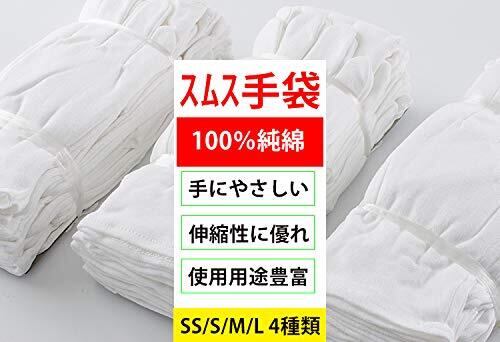 【Sサイズ】つばさ Tsubasa スムス 純綿100% 手袋 1袋(12双入) 女性に最適 多用途 作業手袋 検品 品質管理 マチなし Sサイズ