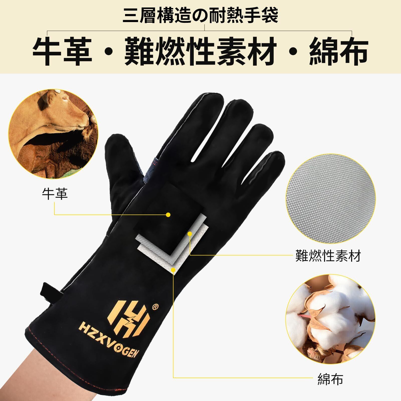【人気商品】H HZXVOGEN 耐熱グローブ 牛革 溶接手袋 耐熱500度 キャンプグローブ 溶接 耐火手袋 BBQ ストーブ 焚き火台 薪ストーブ アウトドアなど用 作業革手袋 男女兼用 | bobo