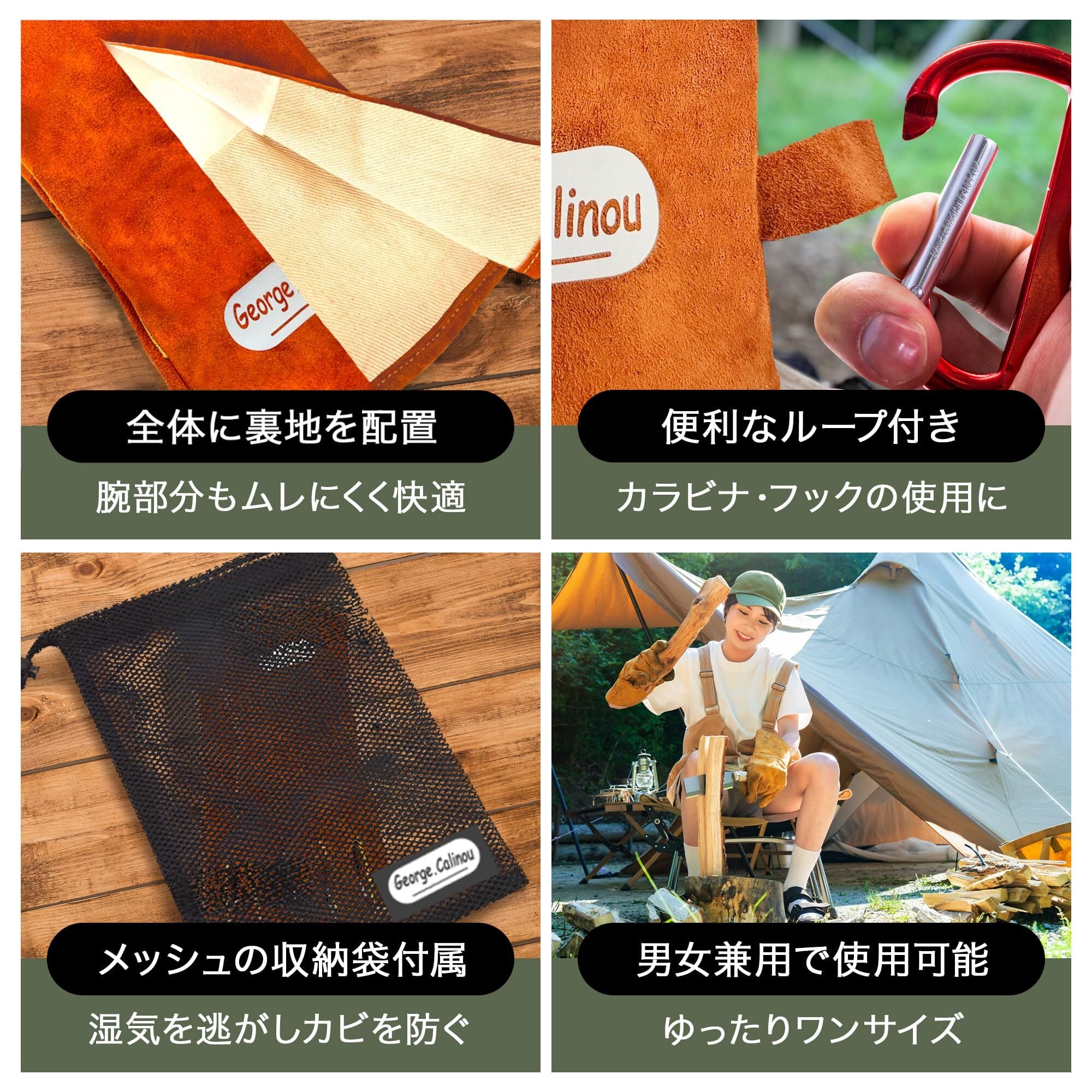 George.Calinou 耐熱 グローブ 手袋 キャンプ アウトドア 薪 ストーブ 焚き火 オーブン キッチン 料理 調理 ロング 革 タイネツテブクロ