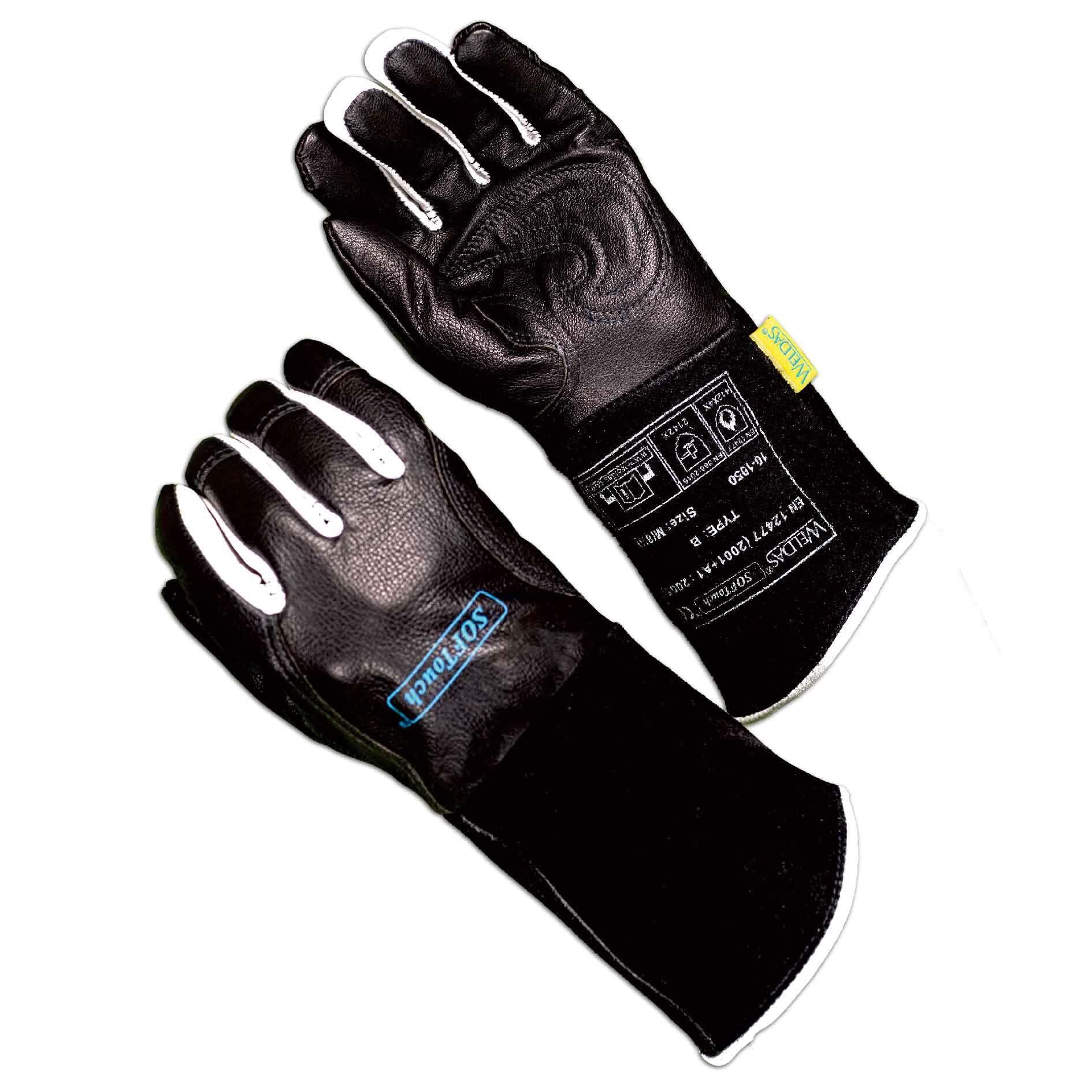 【特価商品】Weldas SOFTouch™ プレミアムTIG溶接手袋 精密溶接用、3D 管状内部フィンガー、独自の COMFOflex® ライニング手のひら、10-1050、ブラック。 | bobo