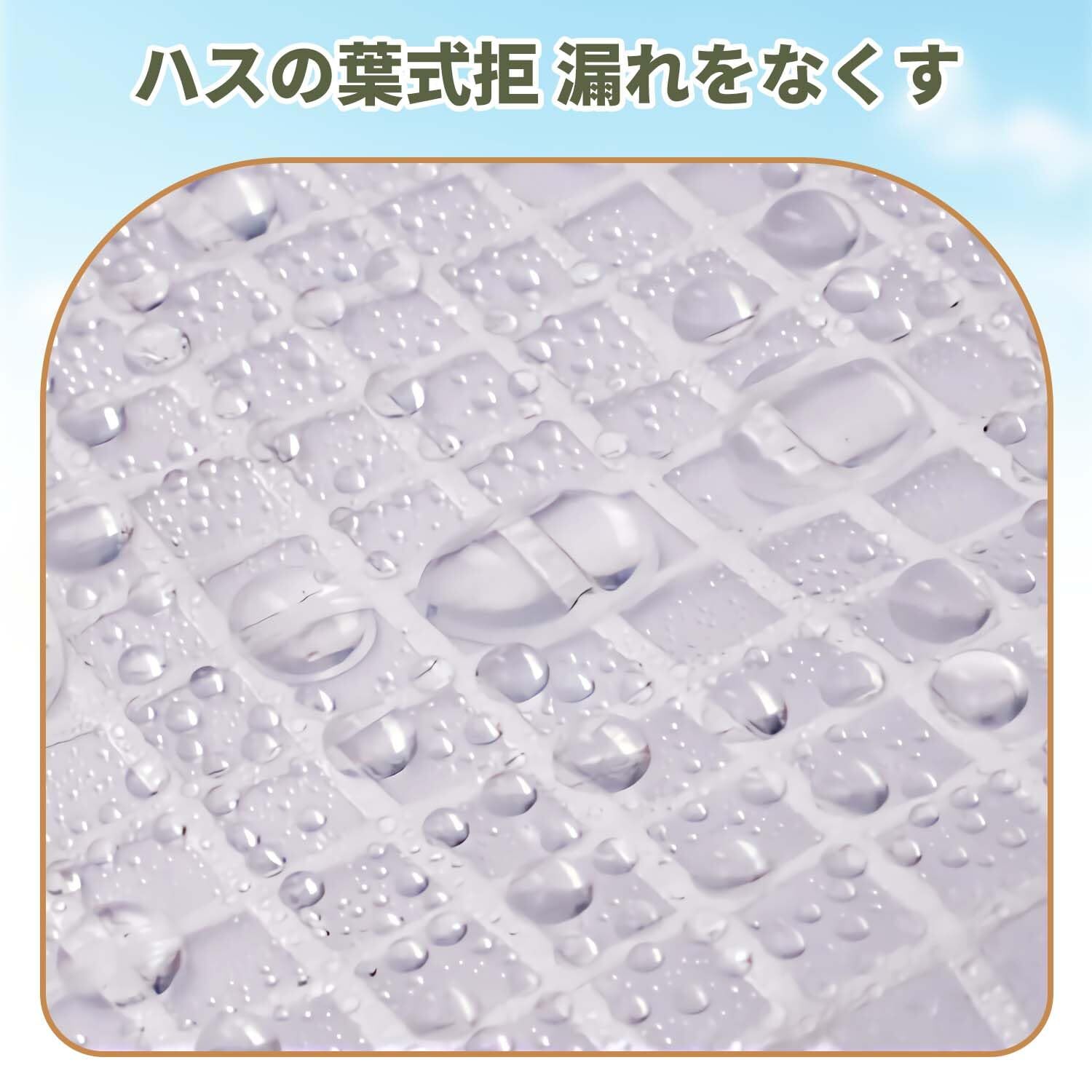 【高温ヒートシール技術】650度の高温ヒートシール技術、ピンホールのない、漏れなし、ゆるみ、亀裂、細かい技量、すぐに水の滑り止めの水滴が滑り落ちる。 縁は二重に補強され、縫製の代わりに熱プレスによって密封されています。 これは、縫製時にこれらの小さな隙間から水が浸透するためです。