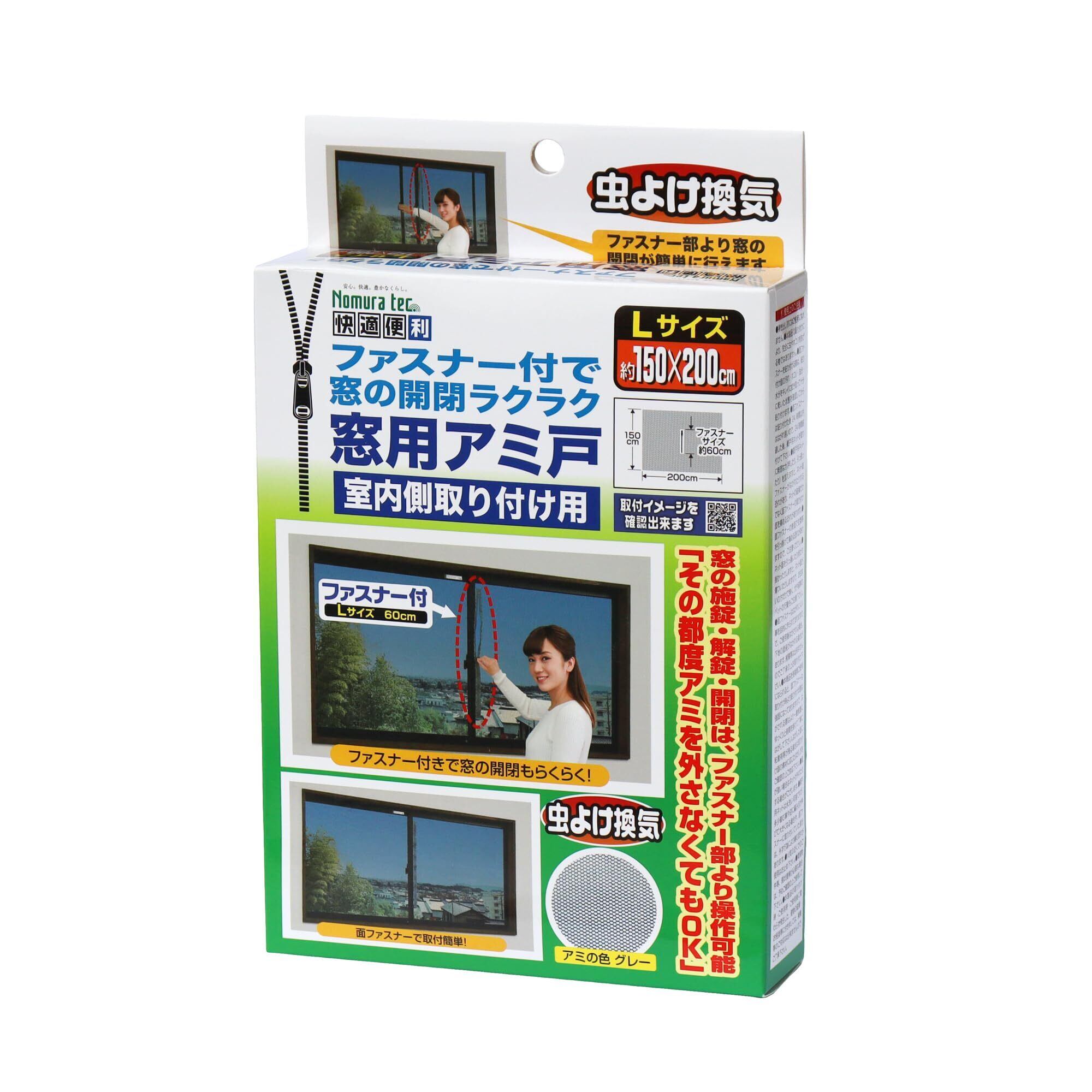【在庫セール】ノムラテック(Nomuratec) 網戸ネット ファスナー付で窓の開閉ラクラク窓用アミ戸 グレー L サイズ 縦150×横200cm 張り替え 補修 虫よけ カーテン 枠 diy 隙間 キッド 部品 シート 簡易 防虫 テープ セット N-2052 | bobo