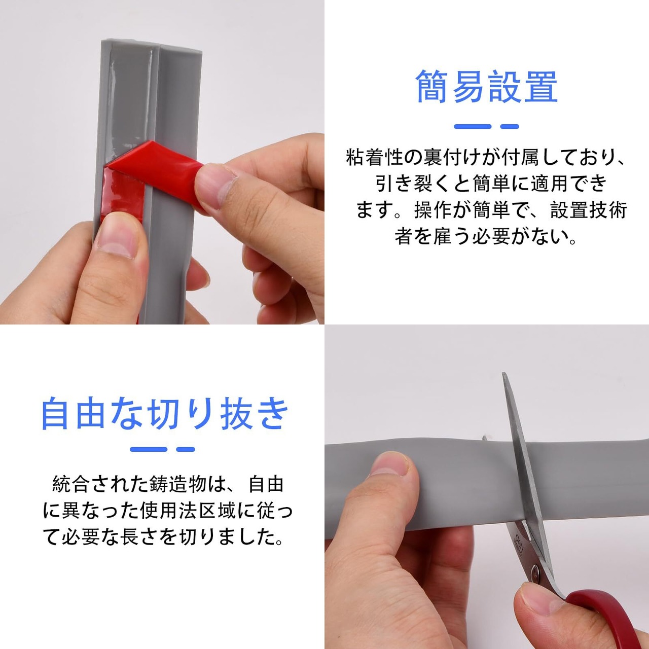 ▶▶ ストリップの取り付けは非常に簡単です。透明な粘着テープが付属しており、穴を開けることなく安全かつ恒久的に設置できます。