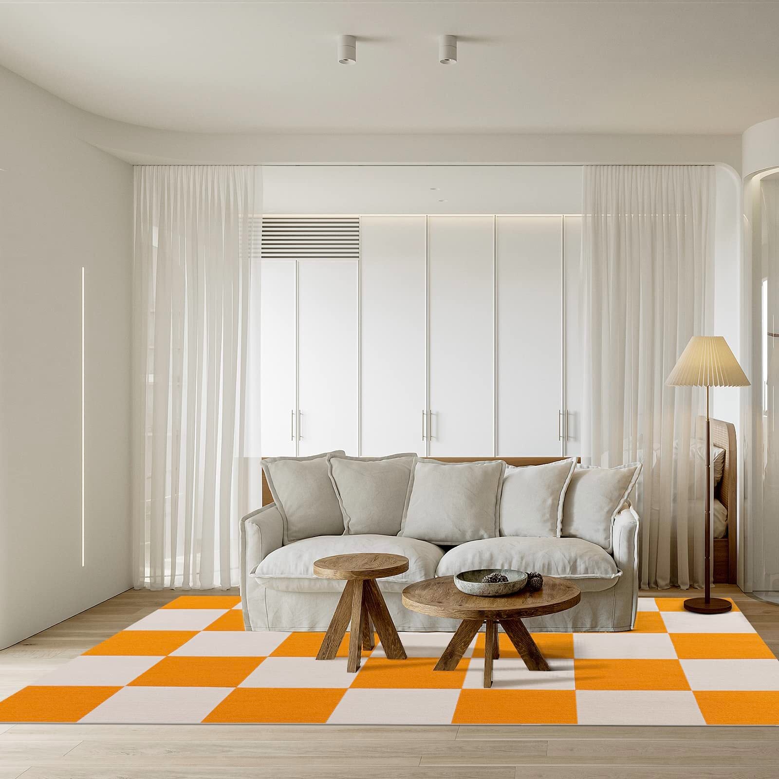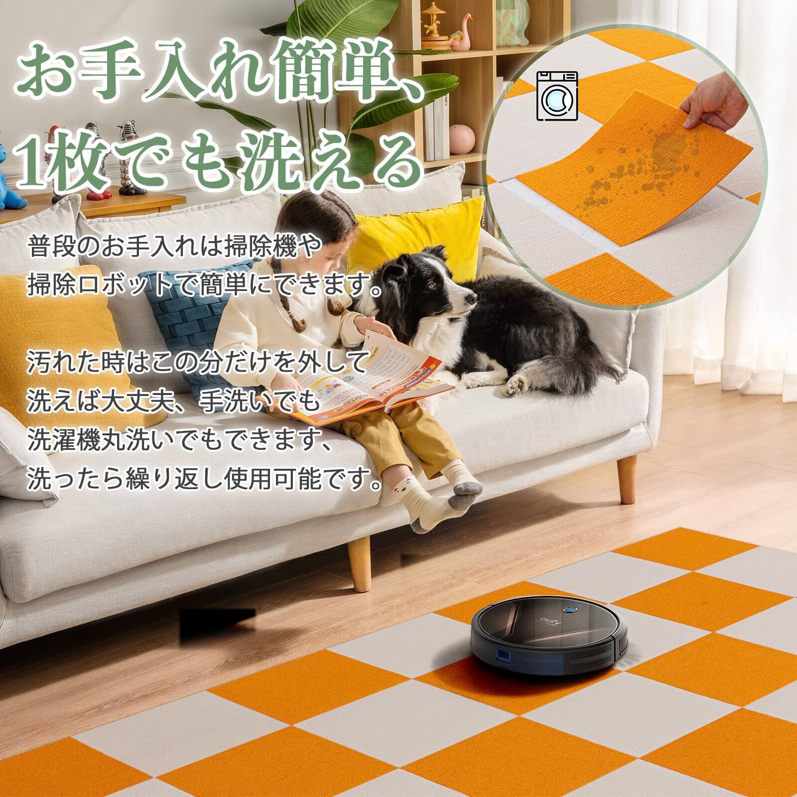 ジョイントマット BOBO タイルカーペット タイルマット 床保護 チェアマット ズレにくいマット 洗える カット可能 吸着カーペット ペット猫犬用 掃除ラクラク 防音 床暖房対応 色:オレンジ*アイボリー【30*30CM*12枚入り】