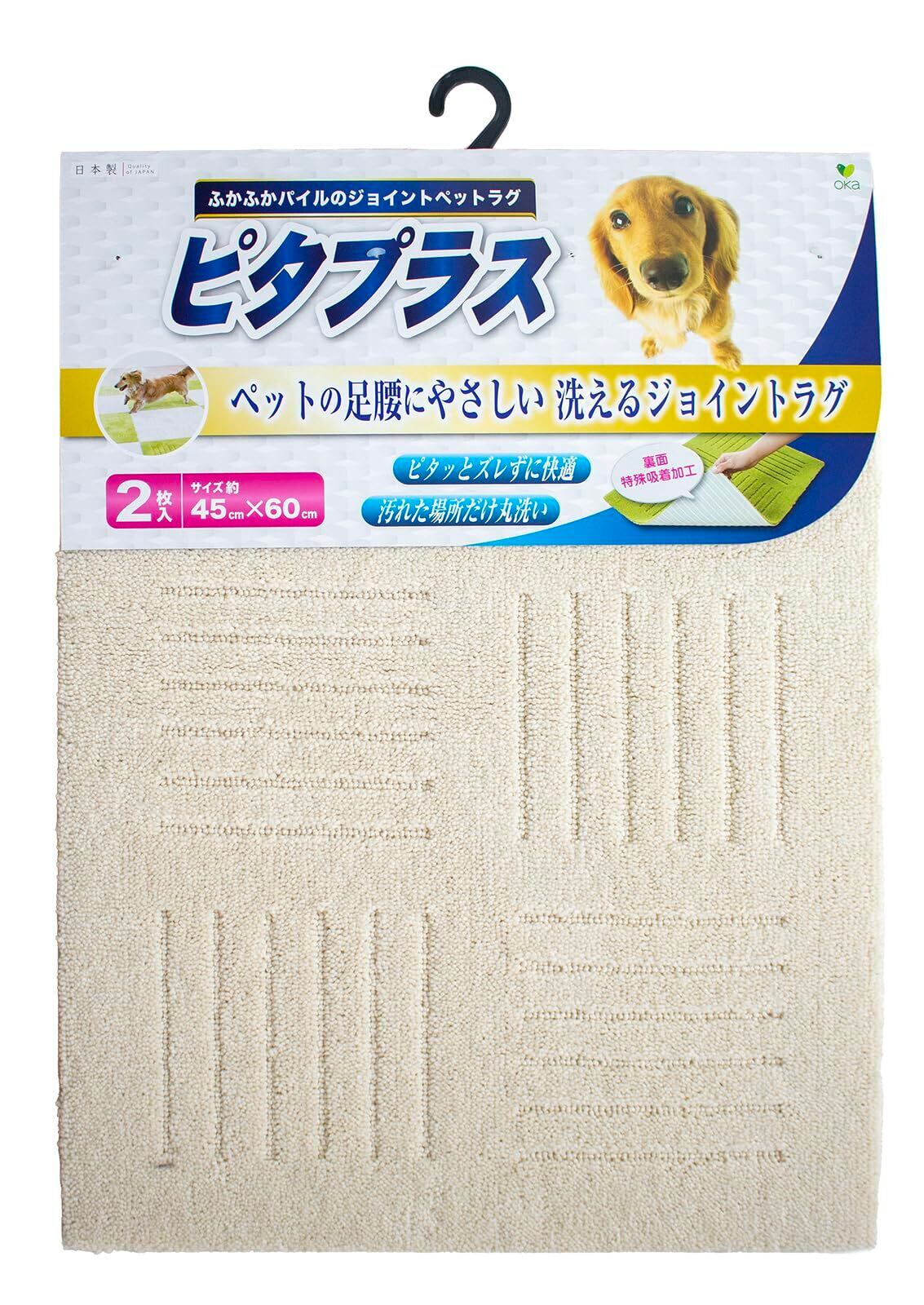 オカ タイルカーペット ベージュ 約45cm×60cm(2枚入り) ピタプラスPET (ジョイント 吸着 洗える)