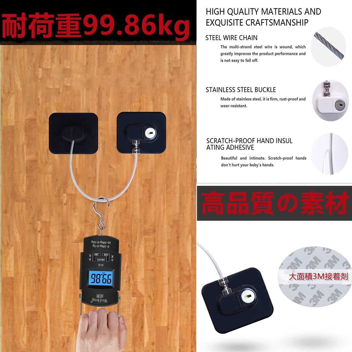 【幅広い用途】窓やドアに取り付けることで、窓が開きすぎないように制限したり、開き戸が開かないようにすることが簡単にできます。ワイヤーの長さは約20cmで、その長さの範囲で好きな箇所をロックすることができます。冷蔵庫ロック、ファイル引き出しロック、キャビネットロック、ペーパートレイロック、物置ロック、プリンタートレイロックなどとして使用できます。