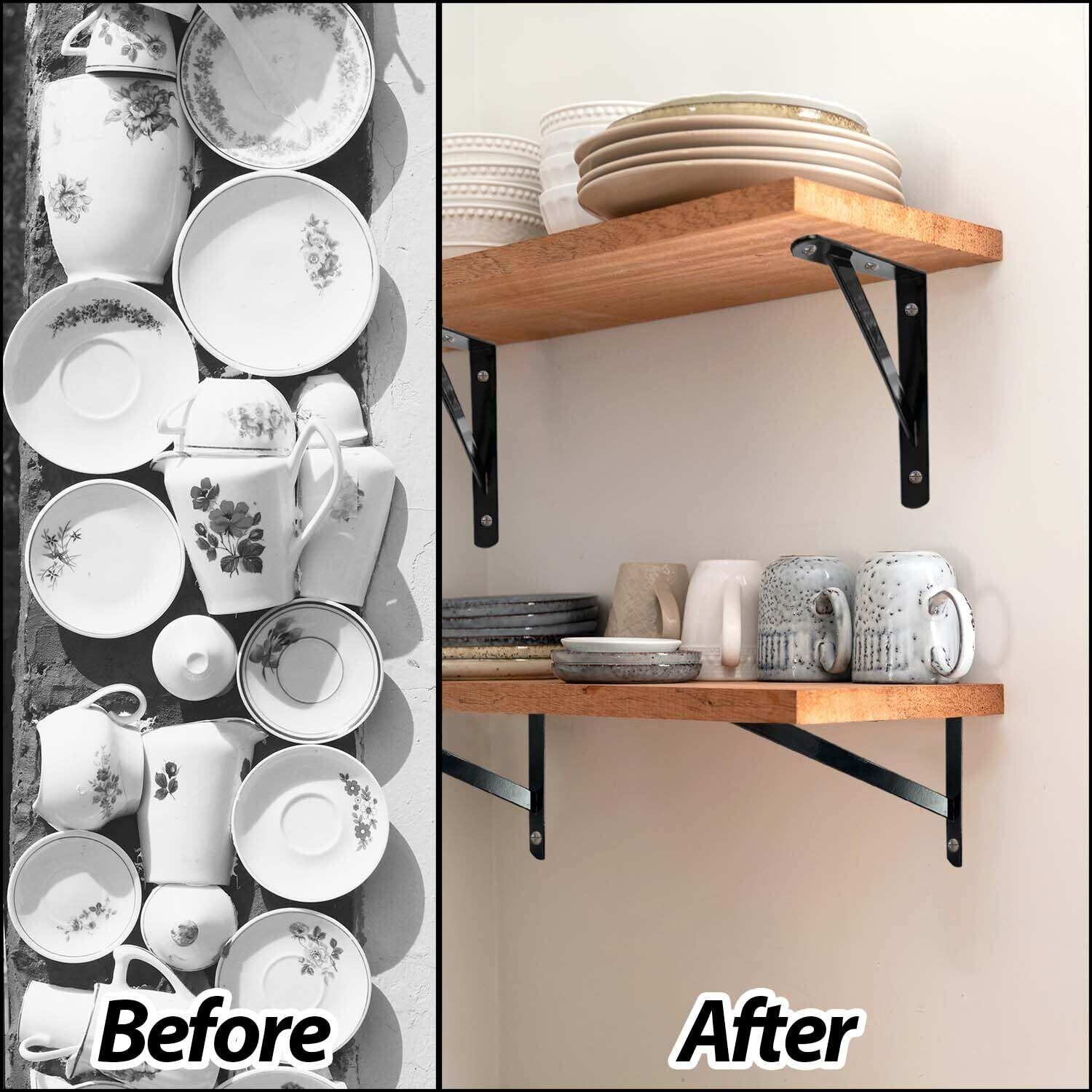 【壁面の収納術】収納専門家オススメ!部屋の見た目が綺麗になるアイテム、壁面スペースをよく活用できる棚受け金具!壁に棚板を乗せるために使用するL字型のブラケット、収納空間をもっと広げてくれます!10本セットで大容量、部屋、オフィス、キッチン、トイレなど壁の空いているスペースを最大限に利用してください!