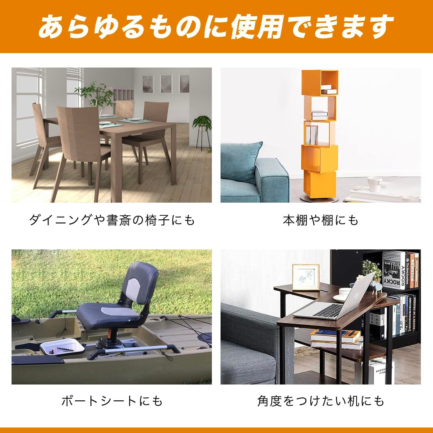椅子以外にもテレビ用・スピーカー用の土台に取り付けることで、モニターディスプレイやスピーカーが360度回転が可能で、お好きな向きにいつでも向きを変えられます。臨場感のある映像とサウンドを自宅で楽しむためにいかがでしょうか?