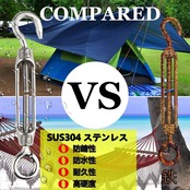 【材質】:ターンバックルはSUS304ステンレスを使用しており、錆びにくく頑丈で耐久性があります。表面は滑らかで手触りがよく、アウトドアや日常的な使用に最適です