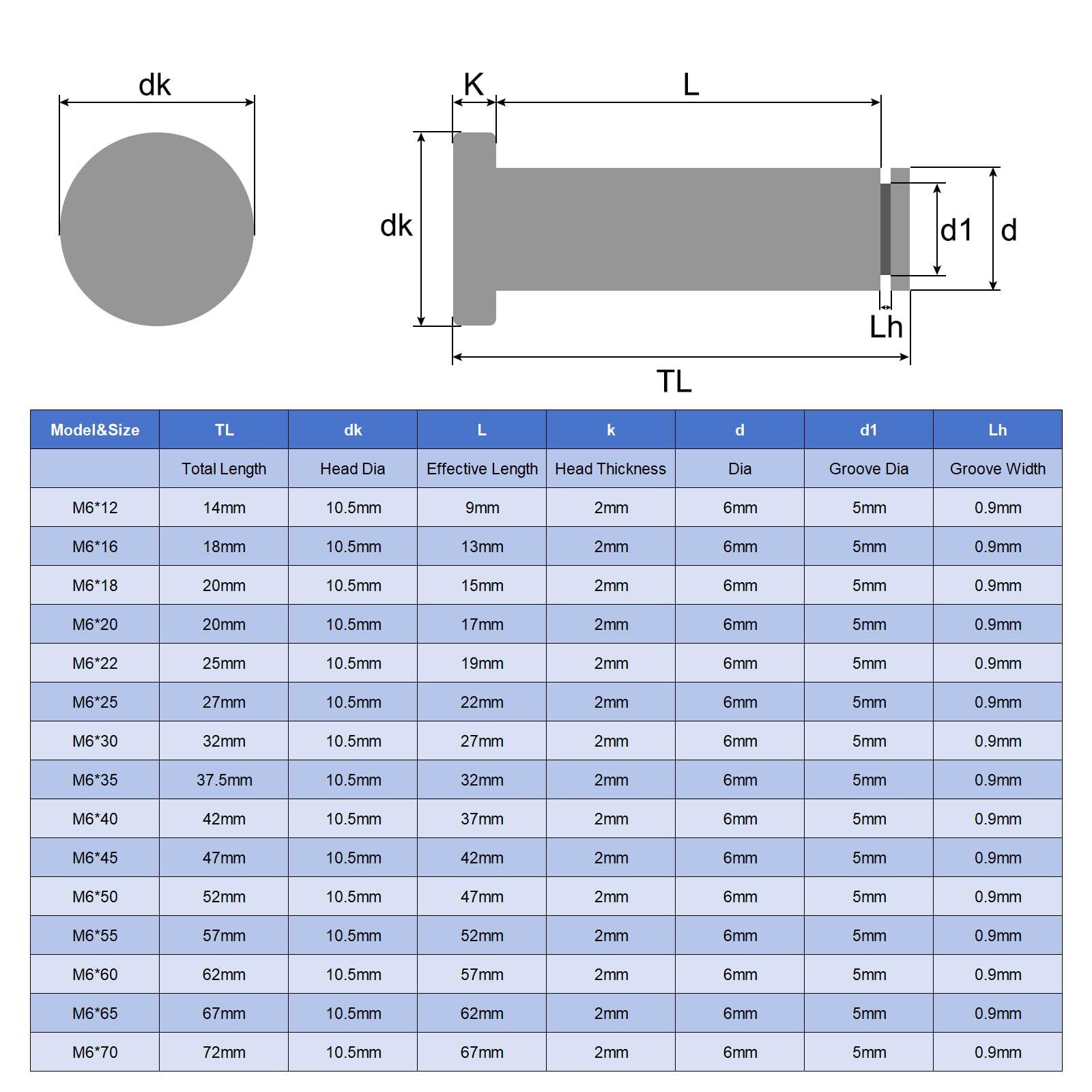 素材: これらのスナップリング位置決め円筒ピンは304ステンレス鋼製で、硬度、耐荷重性、耐食性、信頼性、耐久性に優れています。防錆性であり、異なる材料の部品を固定するために使用できます。耐久性があり、長寿命です。