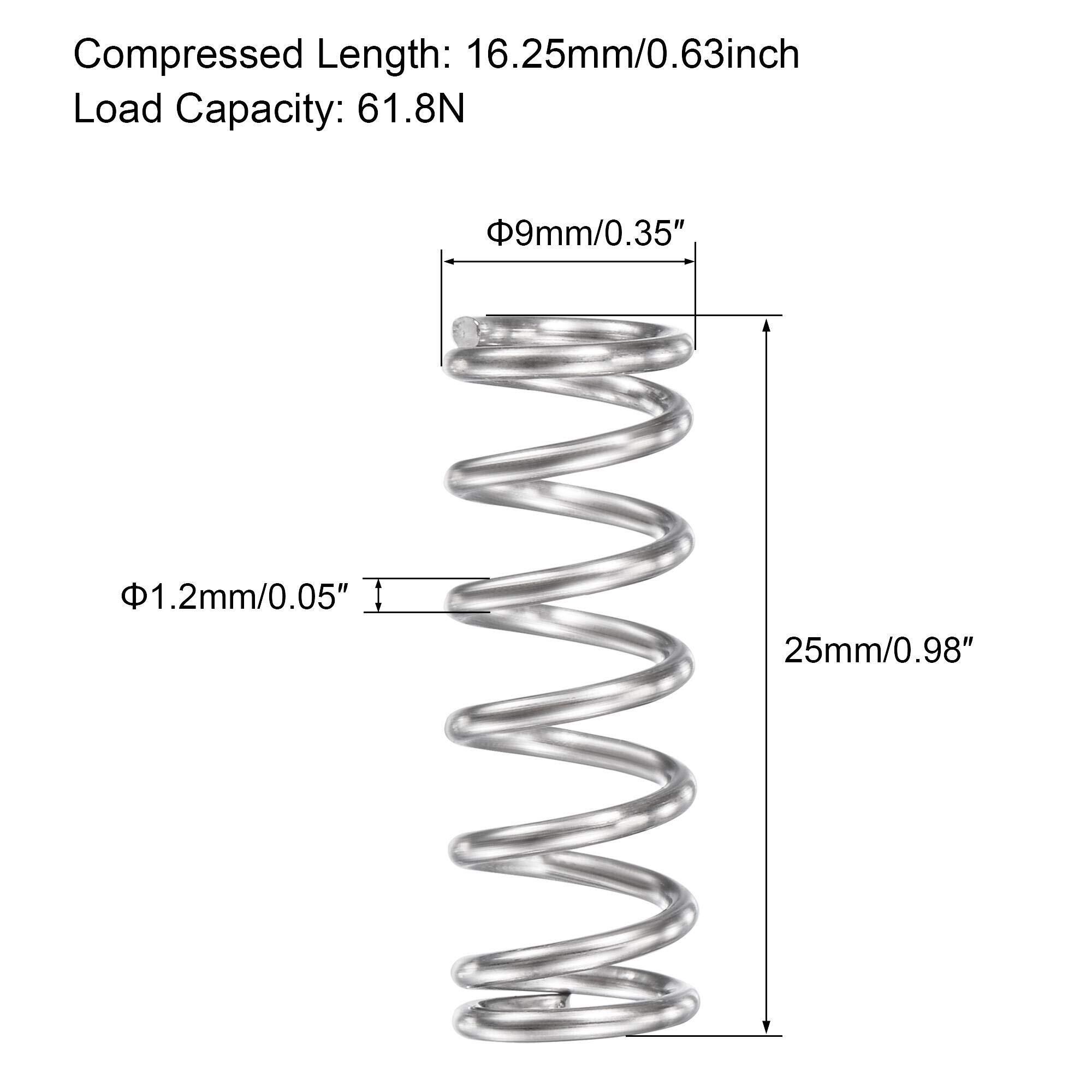 uxcell 圧縮バネ 25mm 押しバネ 外径9mm 線径1.2mm 圧縮長さ16.25mm 圧縮ばね 圧縮スプリング コイルばね ステンレス コイルスプリング 負荷61.8N シルバー 5個入り