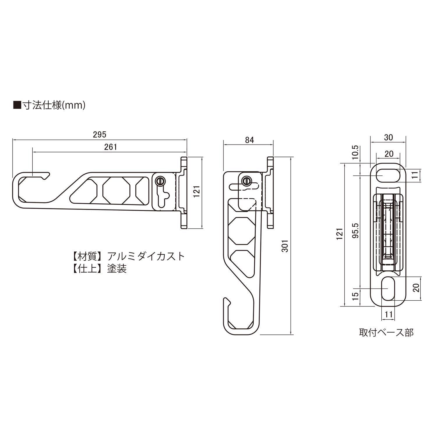 出幅295mmのコンパクトな物干金物。 幅の狭いベランダ等、狭いスペースに最適です。