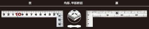 ●長さの測定、直角の確認やケガキ作業に使用する曲尺。 ●大きく読み取りやすい目盛数字です。 ●シルバー加工で表面の反射を抑え目盛が読み取りやすくなっています。