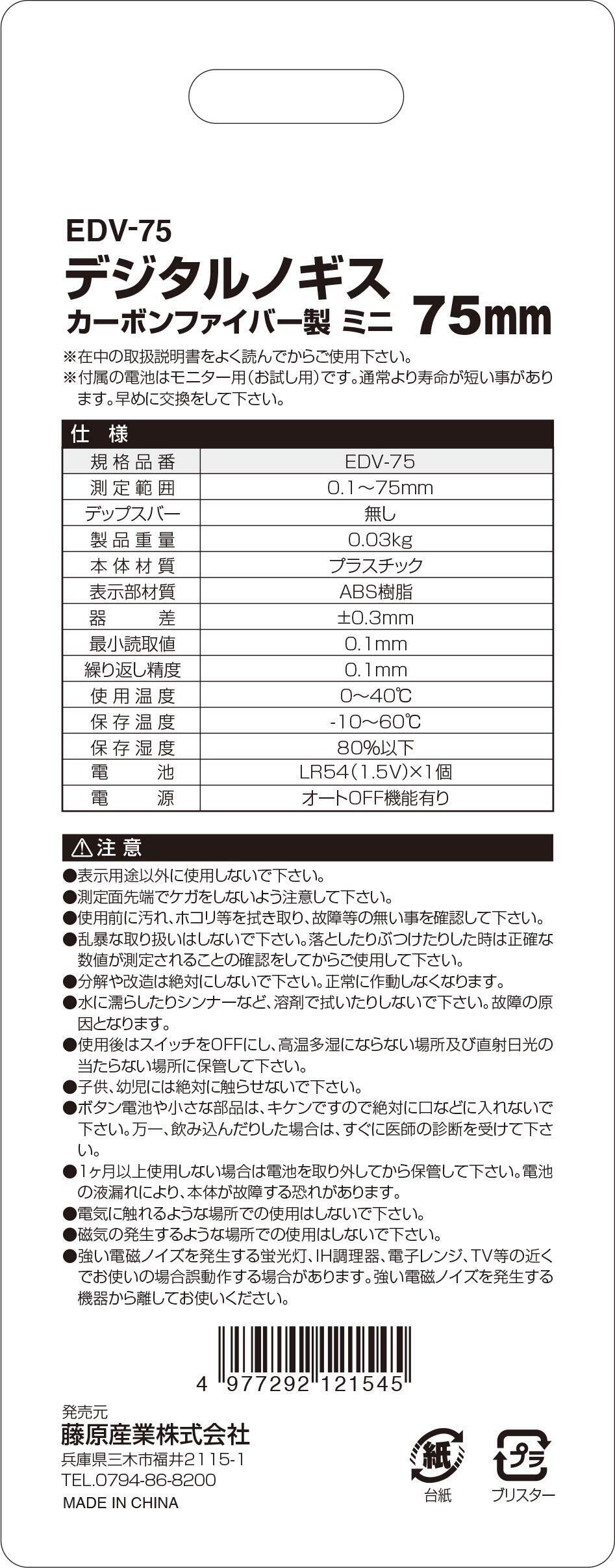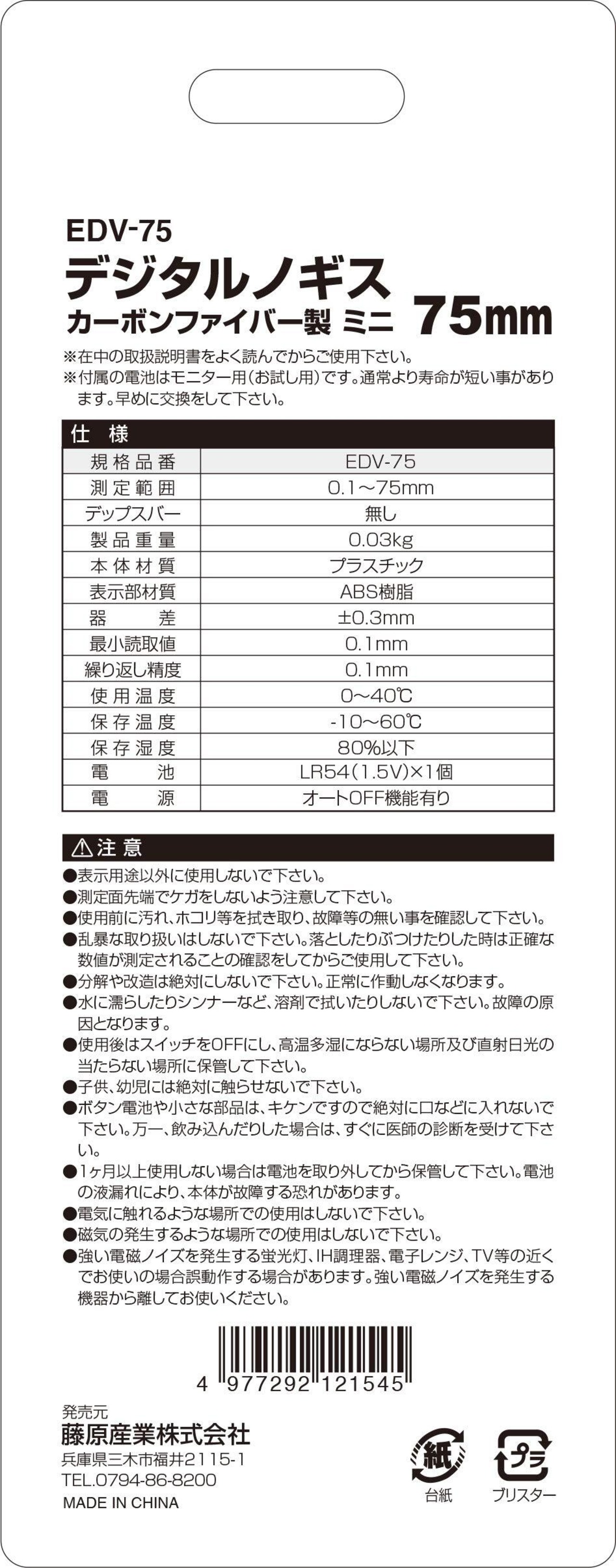 イーバリュー(E-Value) デジタルノギス EDV-75 ミニタイプ 75mm