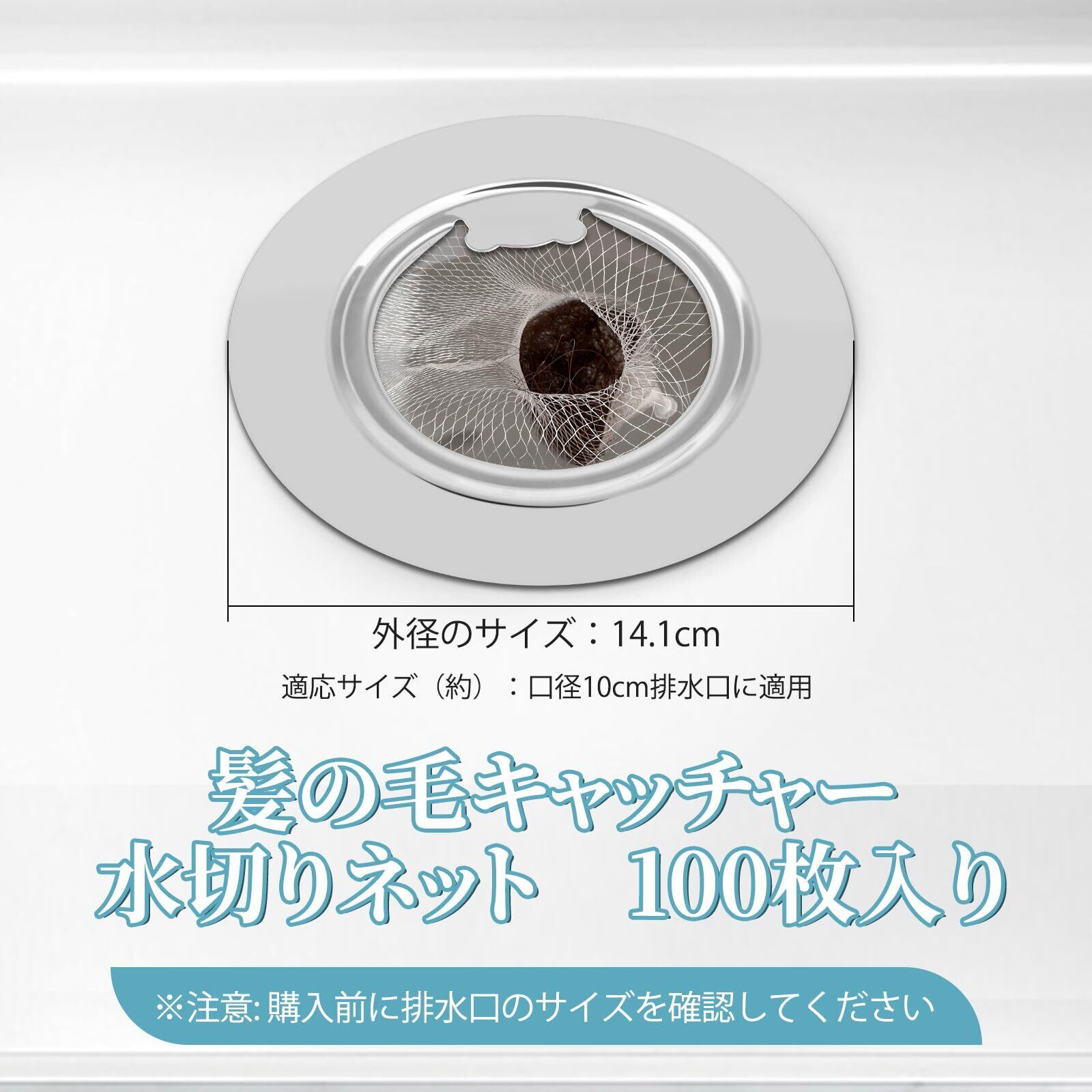【仕様】: 口径約10cm排水口対応。※注意:購入前に排水口の口径は9.5cm以上確保してください。パッケージ内容:お風呂 排水口ネットホルダー X 1個;固定部 X 1個;水切りネットX 100枚