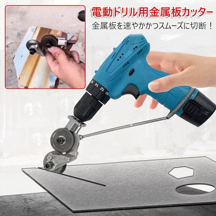 電動ドリルプレートカッター【2024新&スイスイ簡単に切れる】電動カッター 多機能金属切削工具 高速回転式メタルシャー DIY用手動切削工具 電動ドリルばさみ金属板の高硬度材切断用 炭素鋼 アルミ合金 ステンレス板 アルミ 補助カッター 切断 金属カッター(電動ドリルは含まれません)