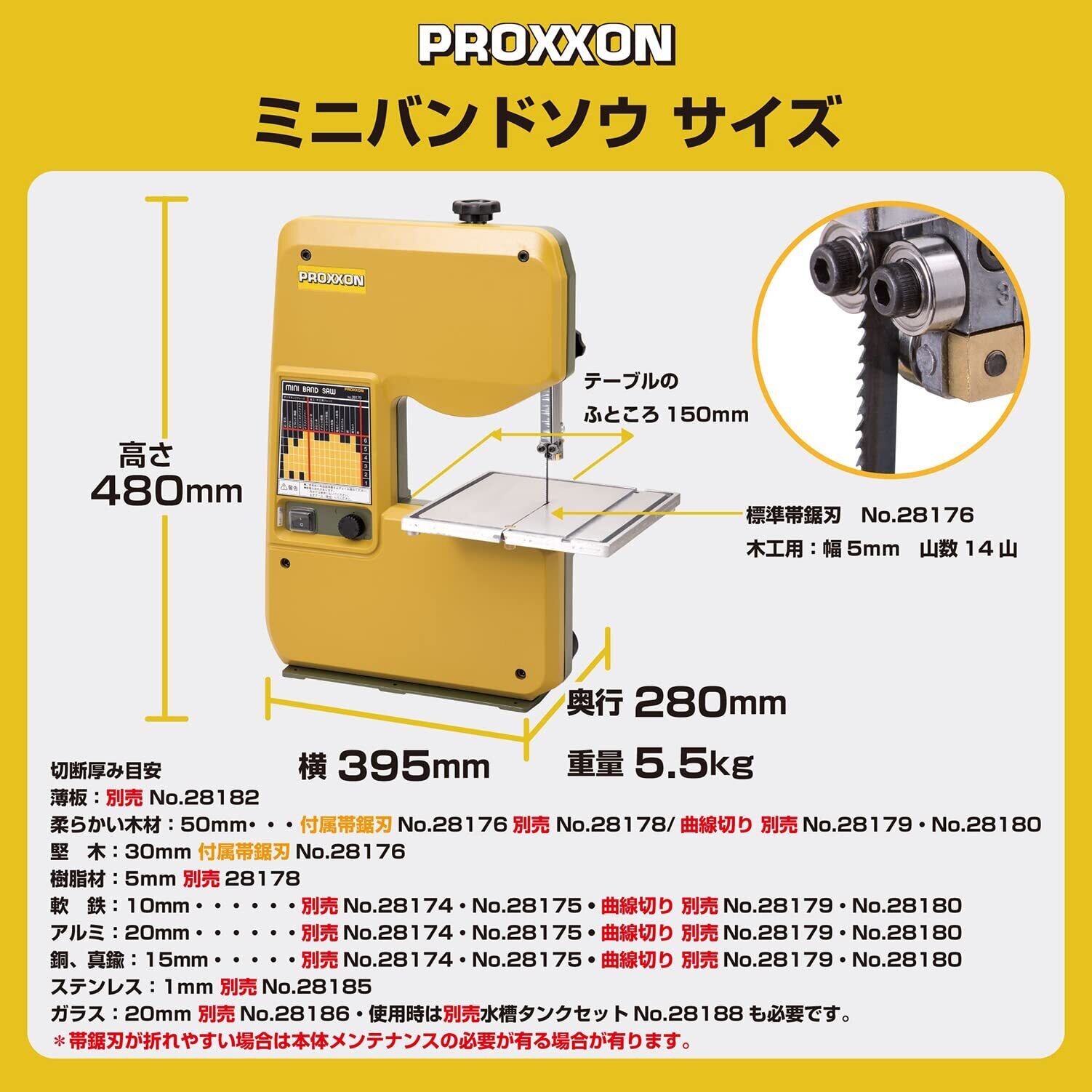 プロクソン(PROXXON) ミニバンドソウ 木工・金属用 小型卓上帯鋸盤 【厚さ80mmの木材まで切断】 No.28170