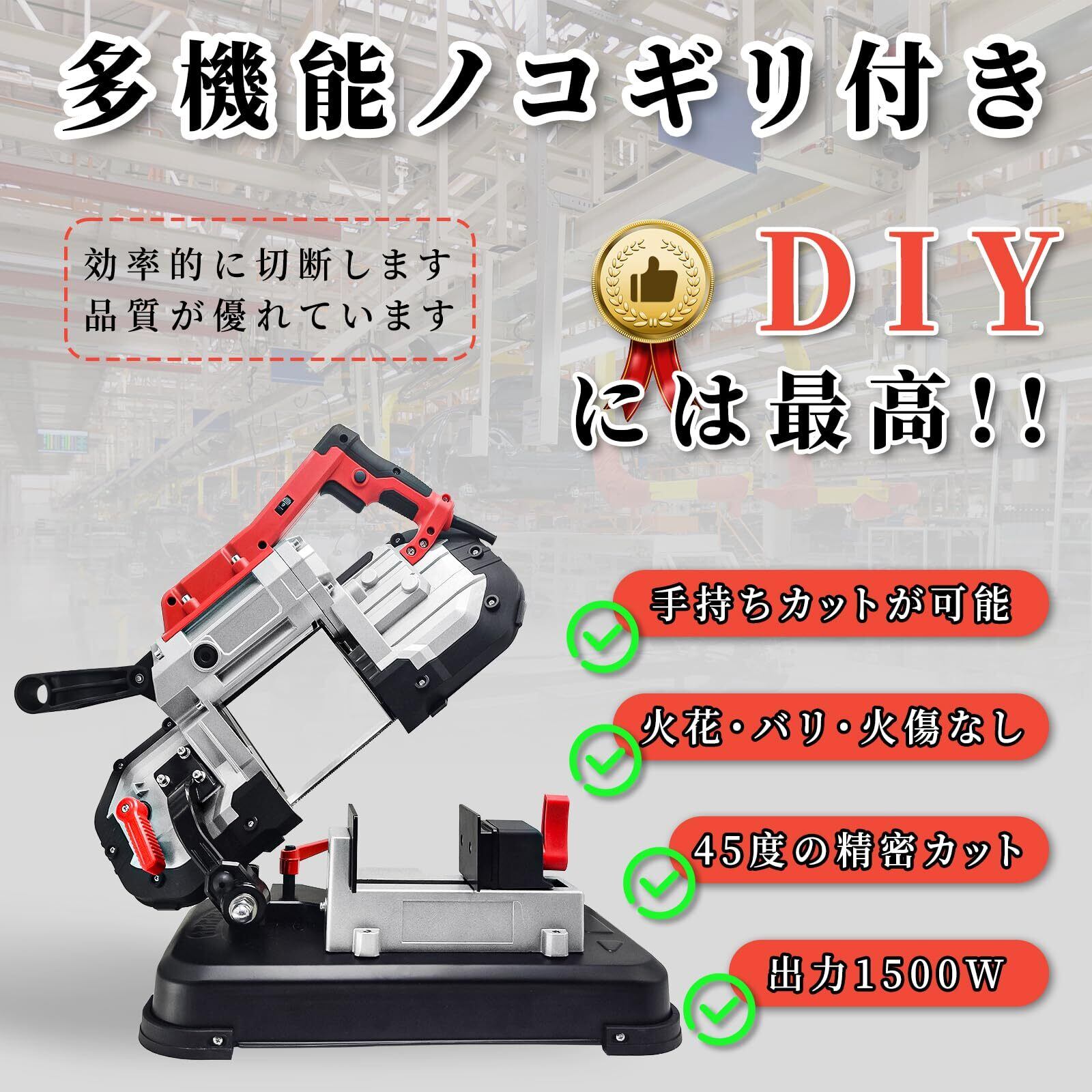 【2022最新】CXCESNS バンドソー ポータブル 100V 最大切断径Φ127mm 電源コード式 1500W 定置·ポータブル両用タイプ 正確な切断 LED灯付 【鉄 木材 ステンレス 丸パイプ 角パイプ 難削材 切断機 切断 帯鋸 帯のこ 0~45度 直角切り 角度切り 電動工具 DIYツール 工具 用品】 卓上バンドソー | bobo