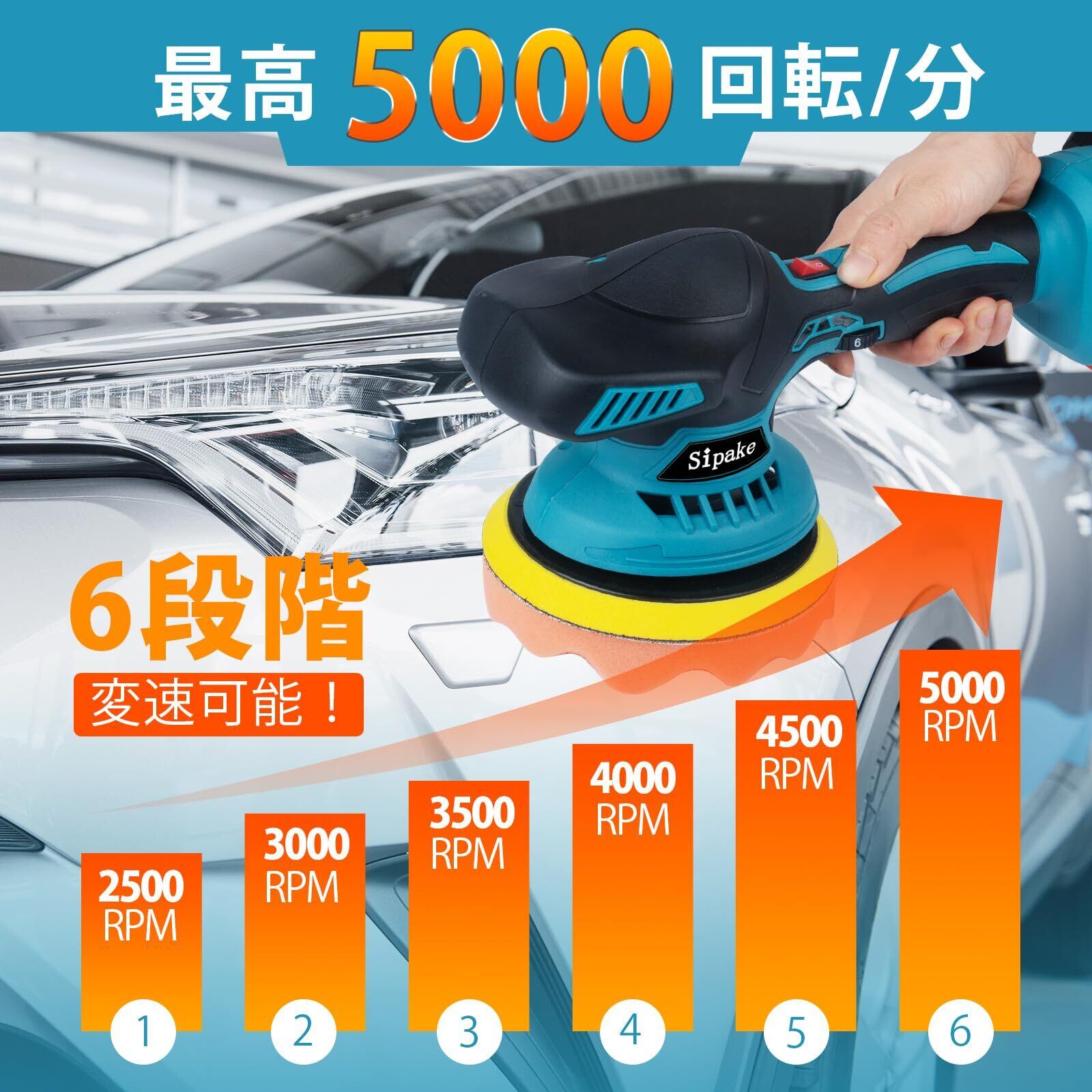 Sipake ポリッシャー 車 電動ポリッシャー バフ 150mm「マキタ バッテリー対応」 6段変速 ダブルアクションポリッシャー 充電式 21V 1500mAhバッテリー2個搭載 5000回転/分 偏心構造 車磨き 研磨器 傷消し 艶出し 家庭用 小型 ポリッシャー 豊かな付属品 日本語説明書付き