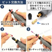 【多種多様な素材や用途にに合わせて】先端に様々なビットを取り付けて、回転させることで色々な用途に使えるリューターです。彫刻や研磨・切断・切削・磨きなどを行うことができ、小型軽作業のDIYに大活躍!該当する材料:金属、木材、プラスチック、粘土、宝石、アルミニウムなどのモデリング。
