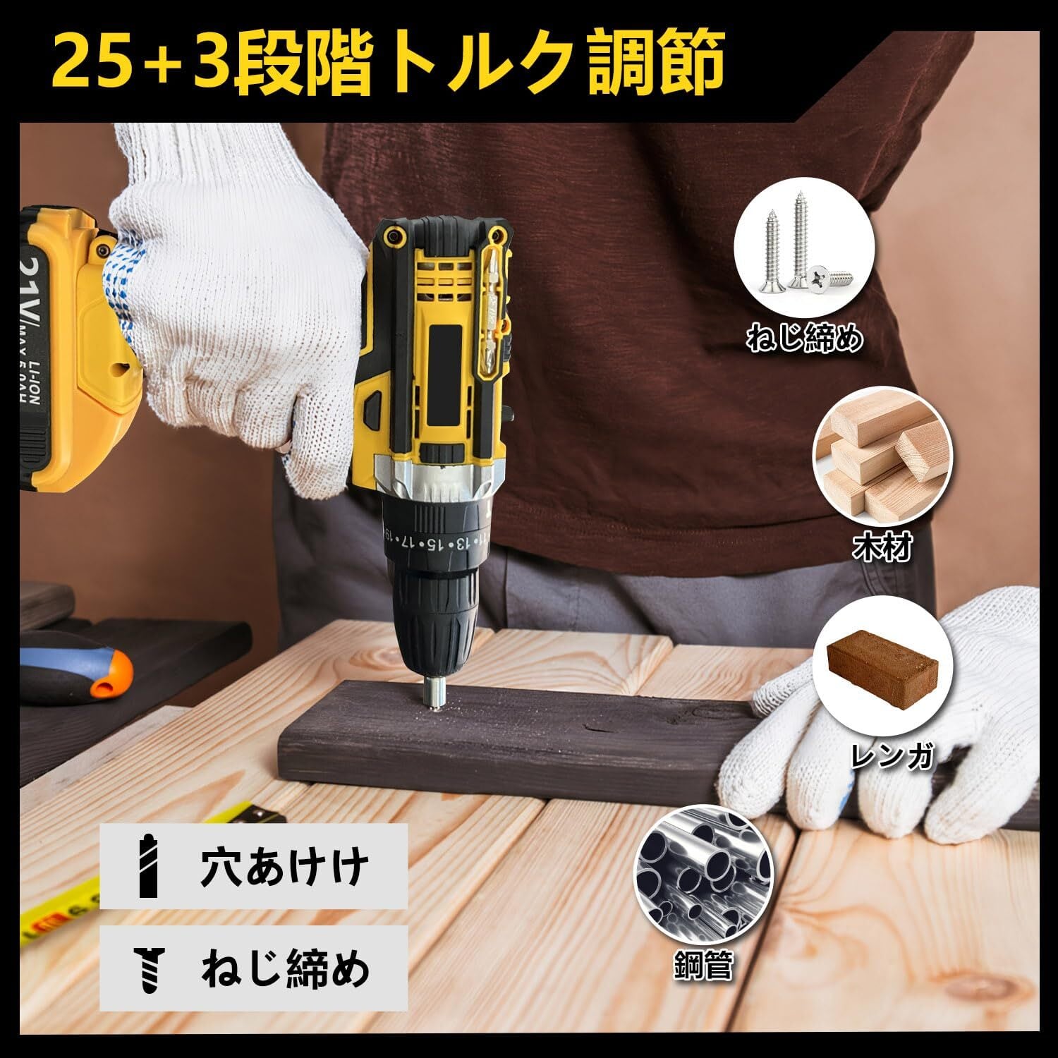 ️【30N·mの強力トルク& 25段階調整】最大トルクは 35N.m に達し、木材、金属、プラスチックなど様々な材質の締め付けと取り外し作業にも簡単に対応できます。35 段階のトルク調整機能を備えており、異なる材質や操作要求に応じて、正確にトルクを制御することができます。家庭の再建、改修、DIY ハンドメイド、リフォーム、園芸作業や自動車修理などのシーンに適しています。
