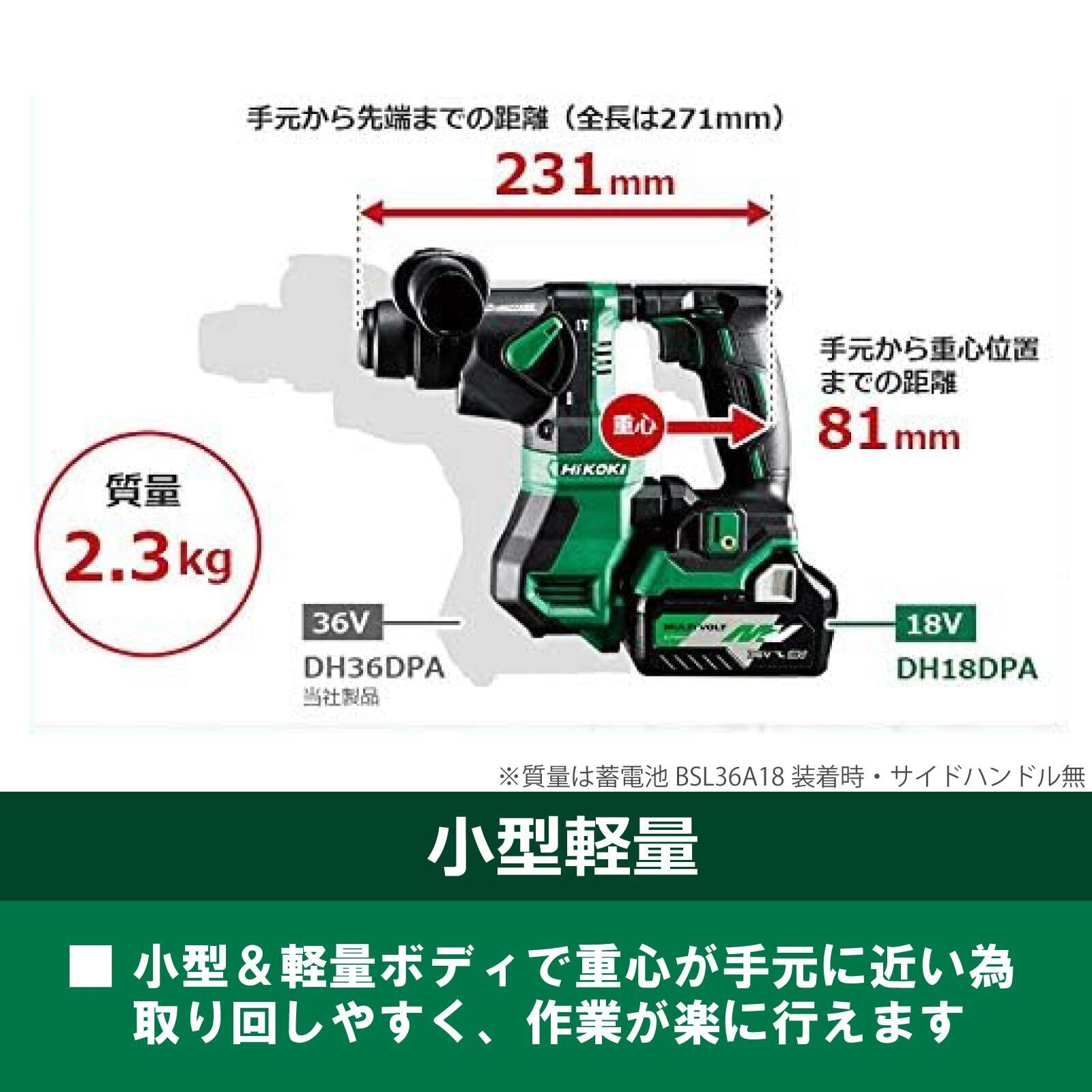 【新着商品】HiKOKI(ハイコーキ) 18V ハンマドリル DH18DPA バッテリー・充電器別売 ケース付 ワンハンドタイプ SDSプラスシャンク 最大穴あけ能力コンクリート18mm DH18DPA(NNK) | bobo