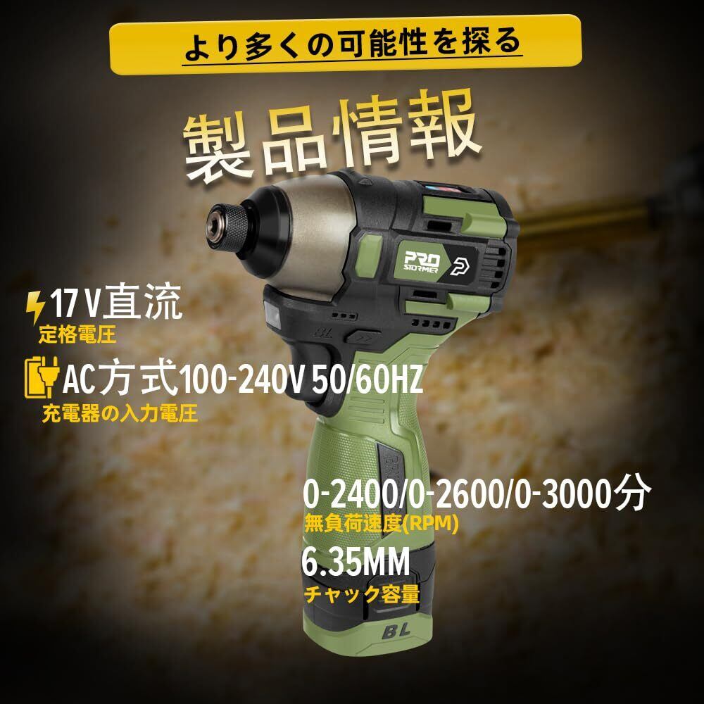 Prostormer 17V インパクトドライバー 工具セット 締付工具 軽量 コードレス 充電式 正逆転切替 LEDライト 最大トルク140N.m 2000mAh ドライバー 無段変速 DIY 家具組立て ソケット8本&ビット10本付 取扱説明書