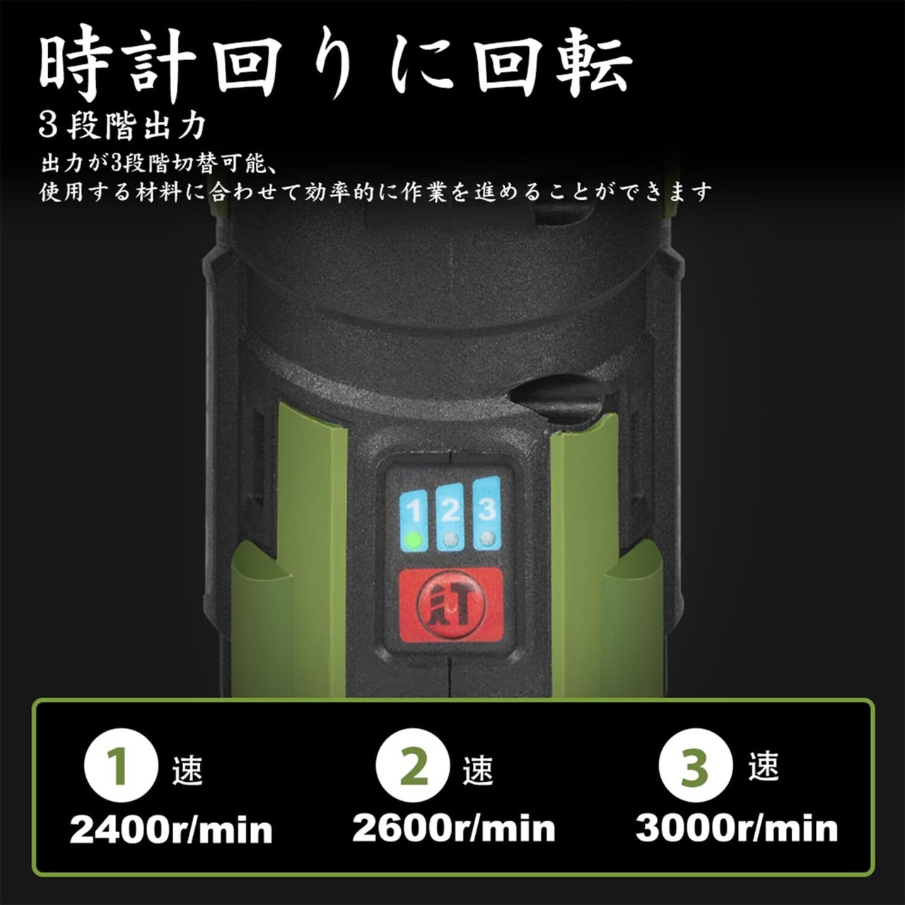 2000mAh大容量バッテリー:2000mAh大容量バッテリーをわずか1.5時間で満充電ができます。使い勝手がよいので、家具の組み立て、DIY、自転車の修理、車などのメンテナンスを利用できます