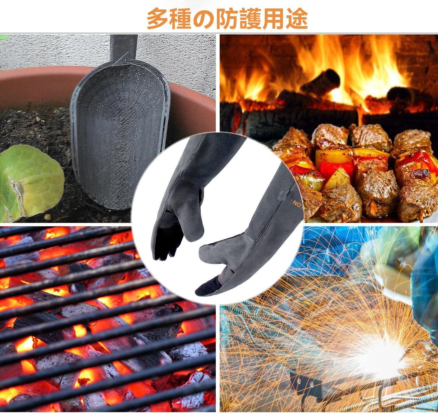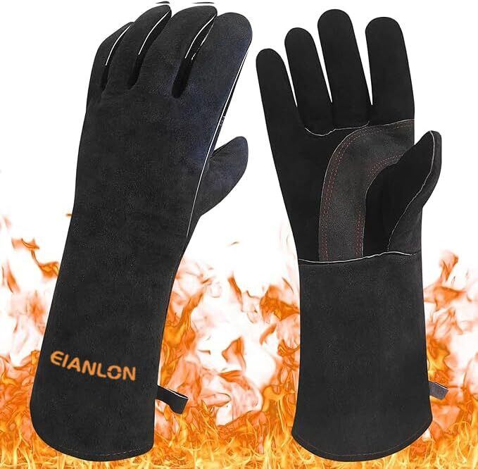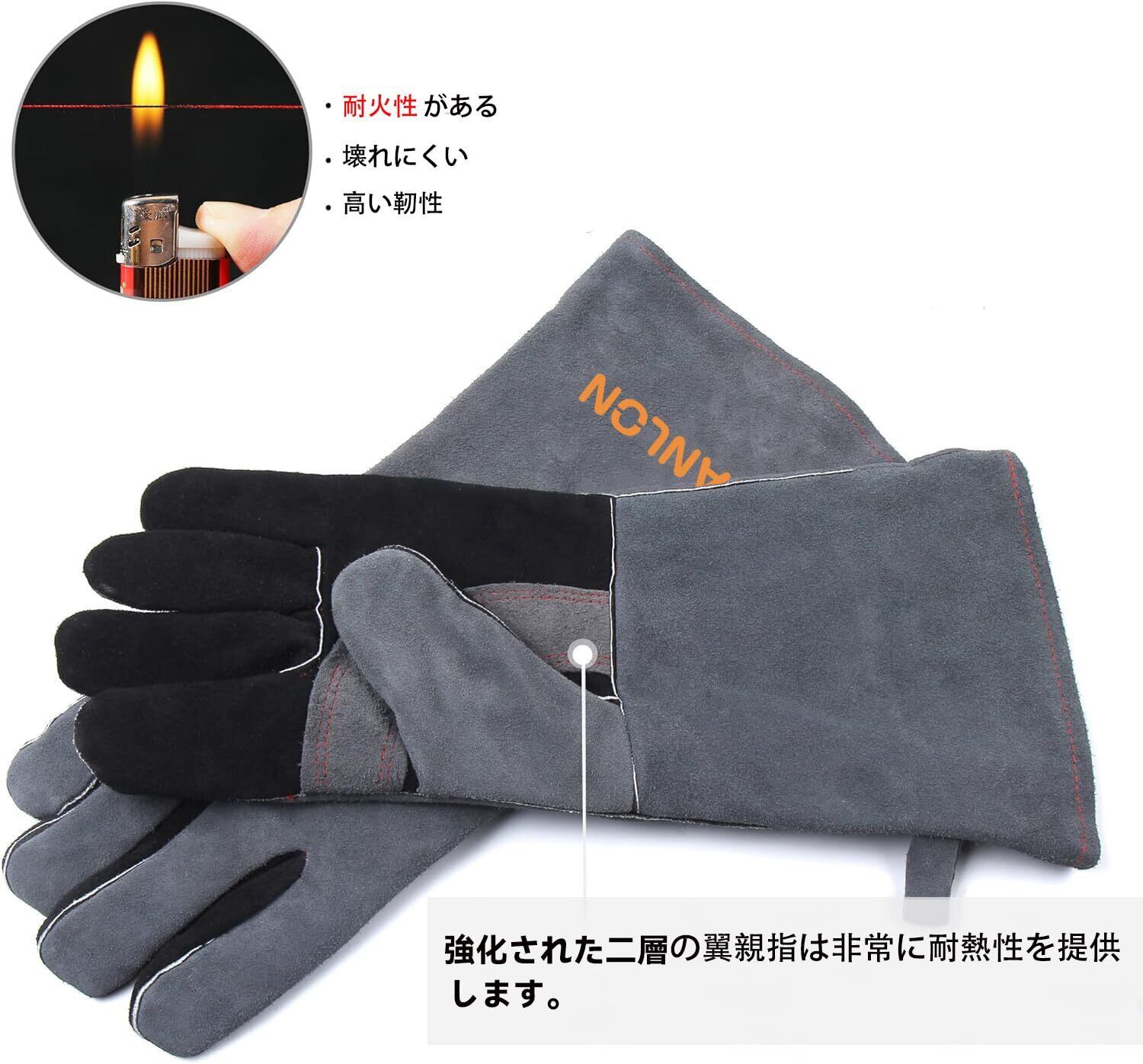 EIANLON 耐熱グローブ 牛革 溶接手袋 焚き火 グローブ ロングタイプ-耐火皮革 キャンプ 手袋は暖炉火坑木炉かがり火炉グリル及び各種溶接設備に適している