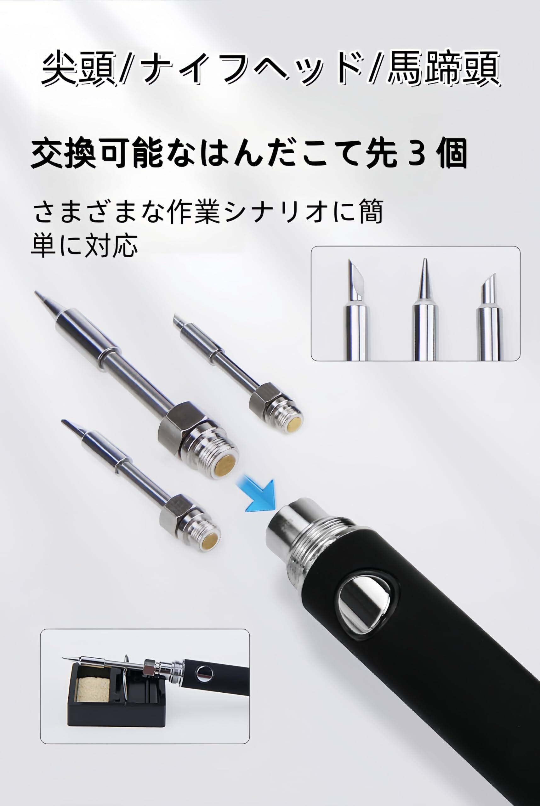 Korekaou ハンダゴテ USB充電式 半田こて こて先3本付き コードレス はんだごて 330-450℃温度調節 1100mah 錫の溶解 小型家電製品の電子部品やケーブルの溶接に最適 (黒)