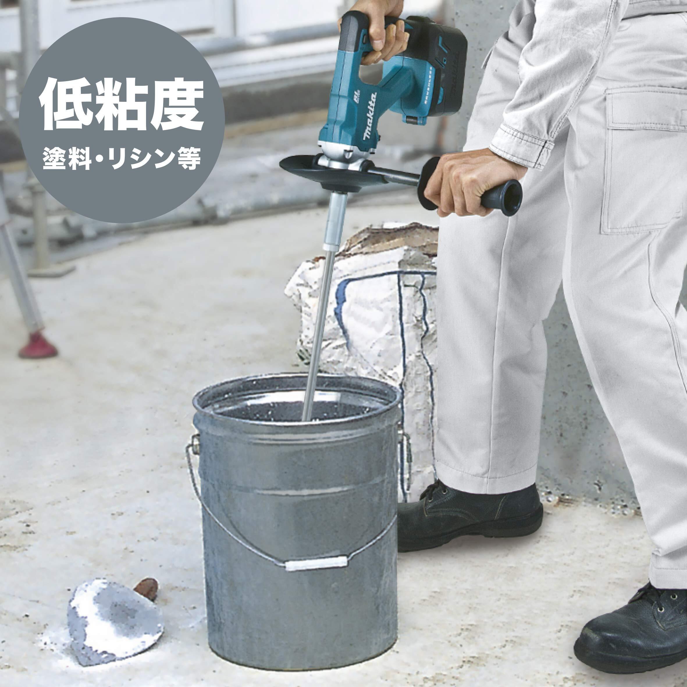 1充電使用時間(目安/BL1860B使用時):低粘度・高速 塗料(総重量4kg) ミキシングブレード165(別売):約30分/高粘度・低速 モルタル(総重量9kg) ミキシングブレード175(別売):約60分